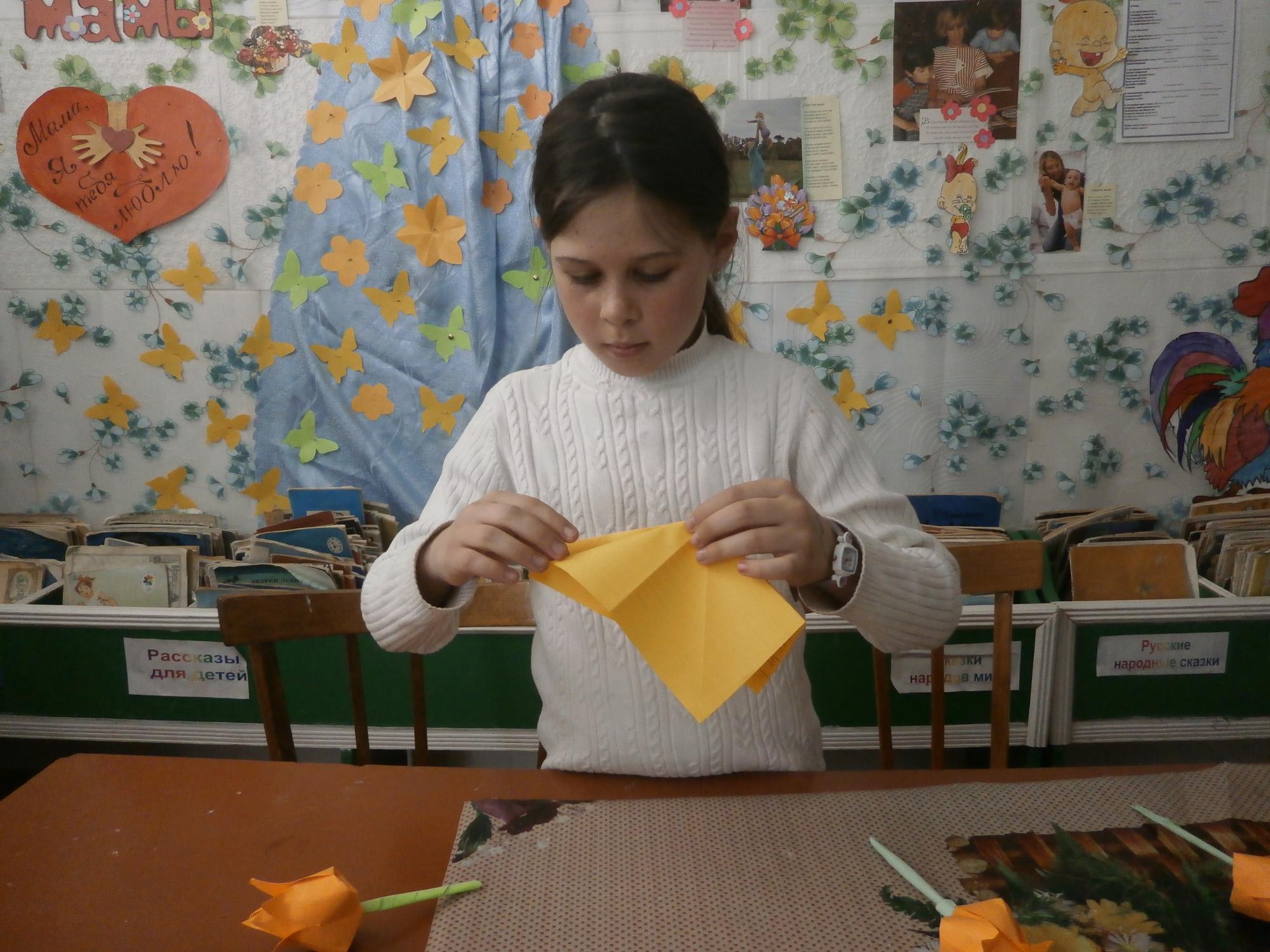В завершение Недели экологии юные читатели на творческом часе «Учимся у природы» изготовили цветы, животных и птиц в технике оригами. В итоге на свет появились журавлики счастья, лягушки, бабочки и много-много цветов.