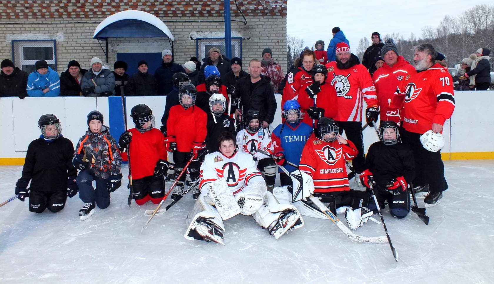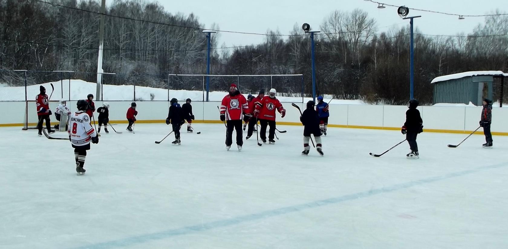 Гости, облачившись в форму, вышли на лёд и провели для самых маленьких сельских спортсменов, только второй год занимающихся хоккеем, мастер-класс: продемонстрировали профессиональные приёмы, а после провели один период игры в одни ворота с заменой вратарей.