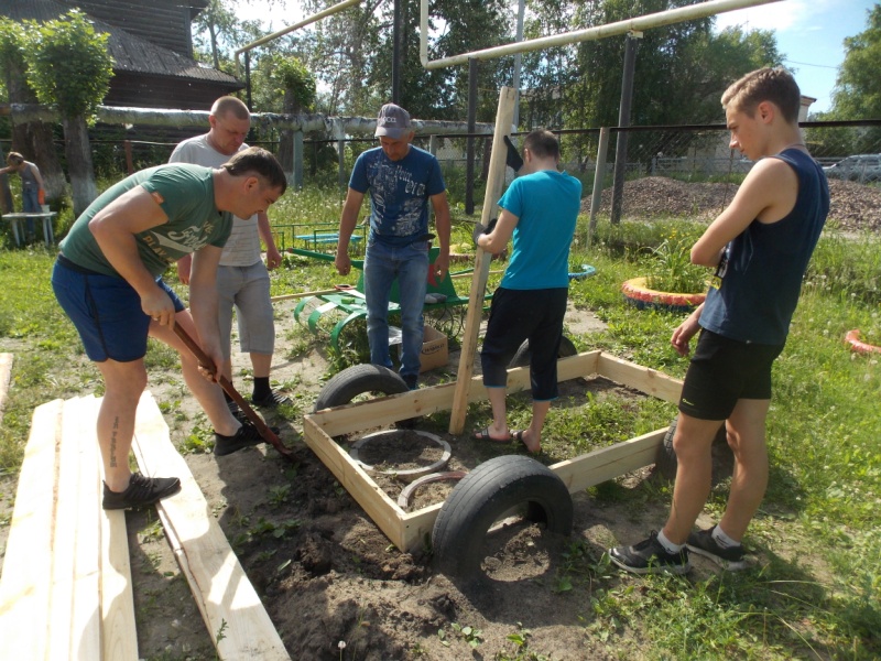 Большая и дружная команда, костяк которой составили мужчины, достроили, покрасили и разрисовали веранду, сделали классную машину, столики с лавочками и другое оборудование. Педагогический коллектив дошкольного учреждения выражает глубокую признательность родителям, принимающим активное и деятельное участие в жизни детского сада: Е.А. Уфимцевой, А.И. Наташиной, И.В. и А.Л. Майстрика, А.В. Боронину, Н.А. и И.В. Койловым, Т.В. Сюзевой и С.Н. Колганову, Т.С. и М.В. Исаевым, Д.А. Качковскому, С.Ф. и Н.А. Чепижко, А.С. и В.И. Колясниковым, В.А. Малыгину, Ю.А. Трифонову, Н.Н. Колгановой, Т.А. Чалой.