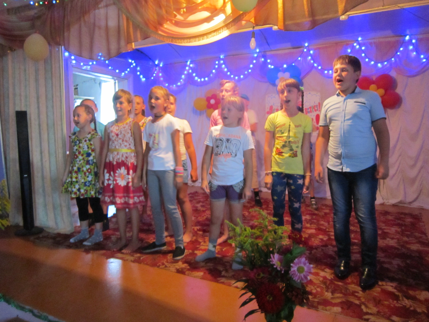 В заключительном концерте лета «Сказочное королевство детства», который состоялся в конце августа, участвовали все ребята от мала до велика. Программа была насыщенной и интересной, песни и танцы, поздравления ребят, которые идут в этом году в первый класс. В концерте приняли участие не только местные дети, но и приезжие ребята из разных уголков нашей страны. За что им огромное спасибо! Это Серёжа и Гена Котохины с Камчатки, Полина и Арина Чумаковы из пос. Советский, что в ХМАО, Полина Хайбулина из г. Кургана, Катя и Уля Гаварс из Москвы, Андрей и Владик Серопяны из Карачаево-Черкесии. А нашим милым, обаятельным девочкам из с. Чистопрудное Насте Оплетаевой и Карине Робертус отдельное большое спасибо, они очень активно себя проявили как в песенном жанре, так и танцевальном.