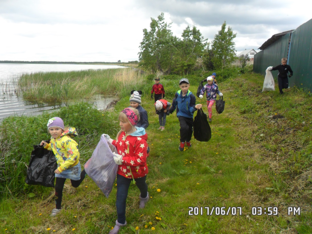 Наряду с познавательными и развлекательными мероприятиями юные жители села участвовали в акции по облагораживанию прилегающей к озеру территории «Чистый берег». Состоялось это мероприятие в рамках Года экологии и было нацелено на воспитание в подрастающем поколении бережного отношения и любви к малой родине и природе.