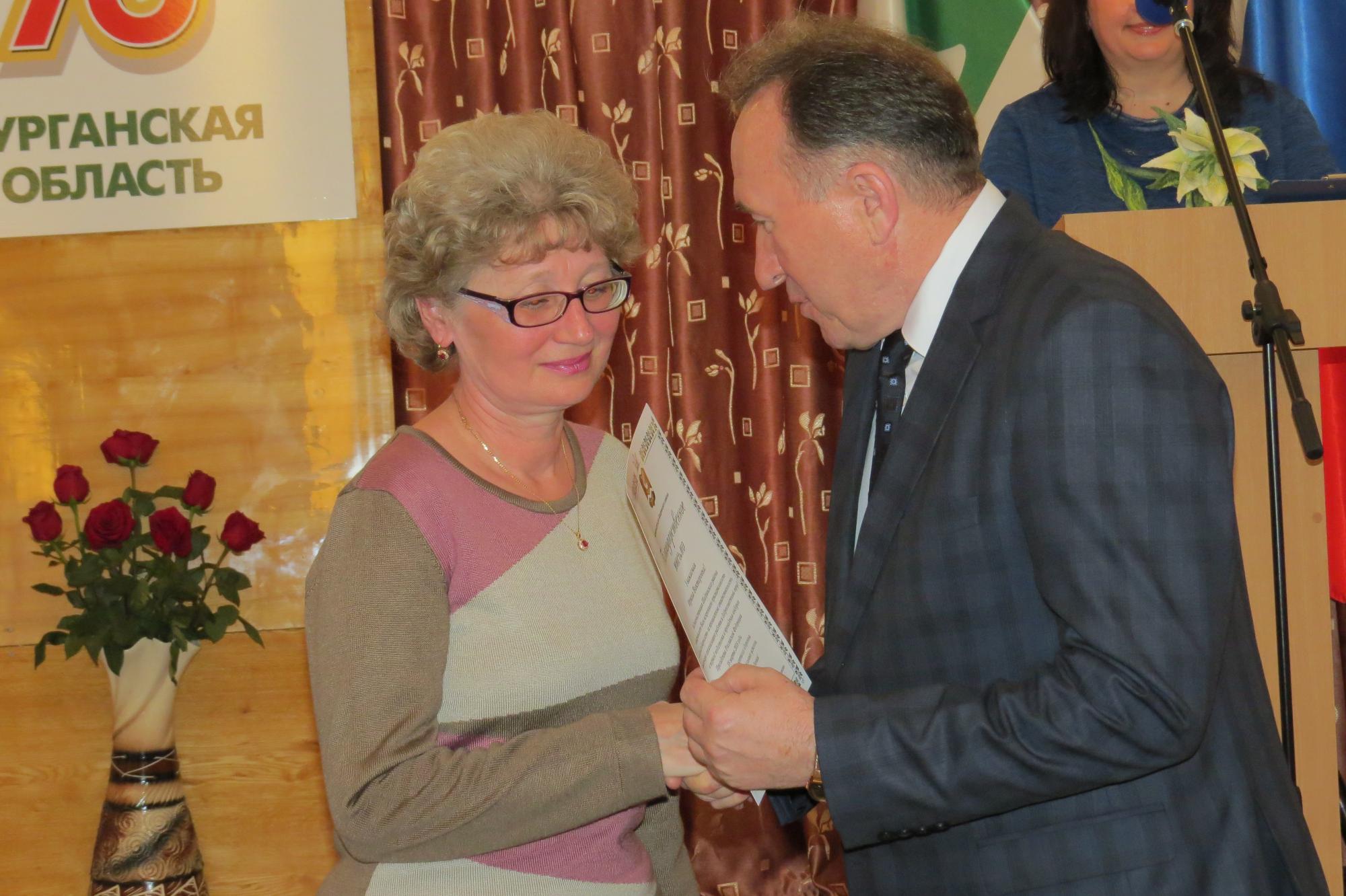 ОДНАКО то, что даже в таких условиях нашим землякам удаётся, в большинстве своём, справляться с поставленными задачами, подтверждает количество полученных ими в тот день наград. Самые высокие из них – Почётные грамоты Правительства Курганской области – под бурные аплодисменты собравшихсяя из рук В.В. Осокина получили: ведущий специалист по финансированию и бухгалтерскому учёту Управления сельского хозяйства Е.В. Вахрушева, Глава Ичкинского сельсовета А.А. Куликов, главный бухгалтер Администрации Батуринского сельсовета Т.А. Пушкова, председатель совета ветеранов Понькинского сельсовета А.М. Салазкин.