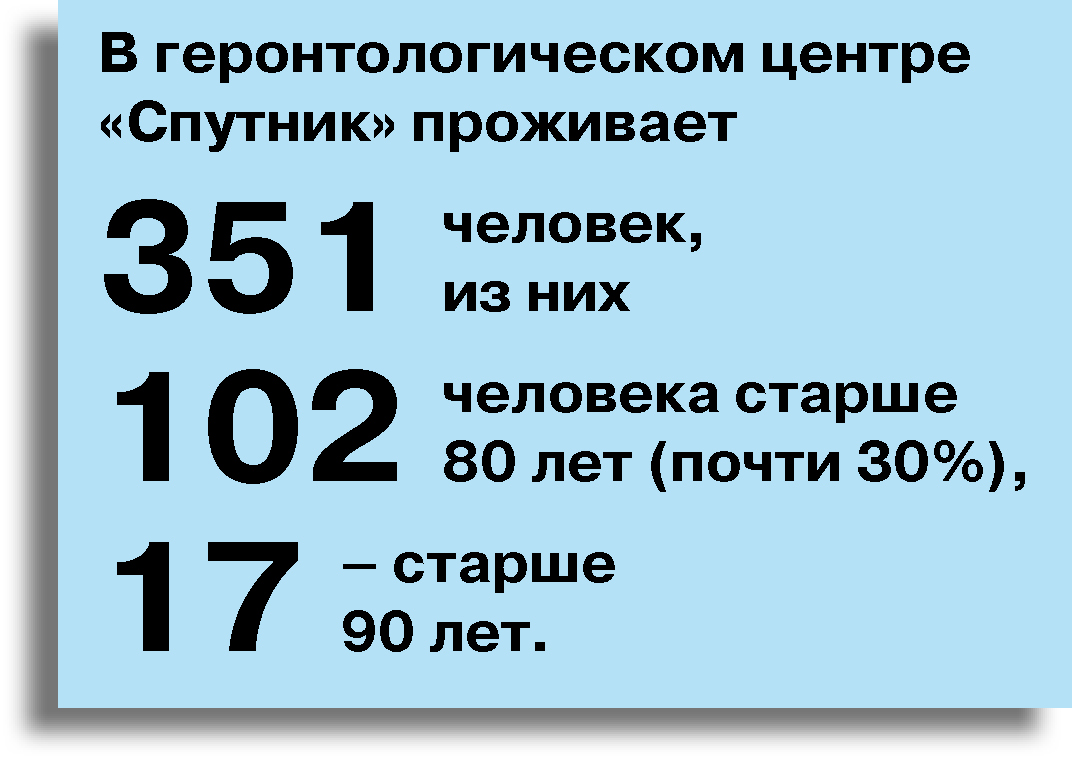 узлами. Есть всё необходимое для медицинского и бытового обслуживания, работает библиотека. Очень приятно, что наши проживающие активно посещают тренажёрный зал, как с инструктором, так и самостоятельно. Здесь есть различные тренажёры, беговые дорожки. Двигательная активность помогает им не только поддерживать своё здоровье, но и быстрее восстанавливаться после каких-либо заболеваний, например, инсультов. Востребован зал для проведения мероприятий, – рассказывает о здании директор геронтологического центра «Спутник» Лариса Захарова.