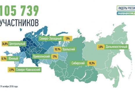 На утро 18 октября в конкурсе #ЛидерыРоссии зарегистрировались участники из России и 46 иностранц