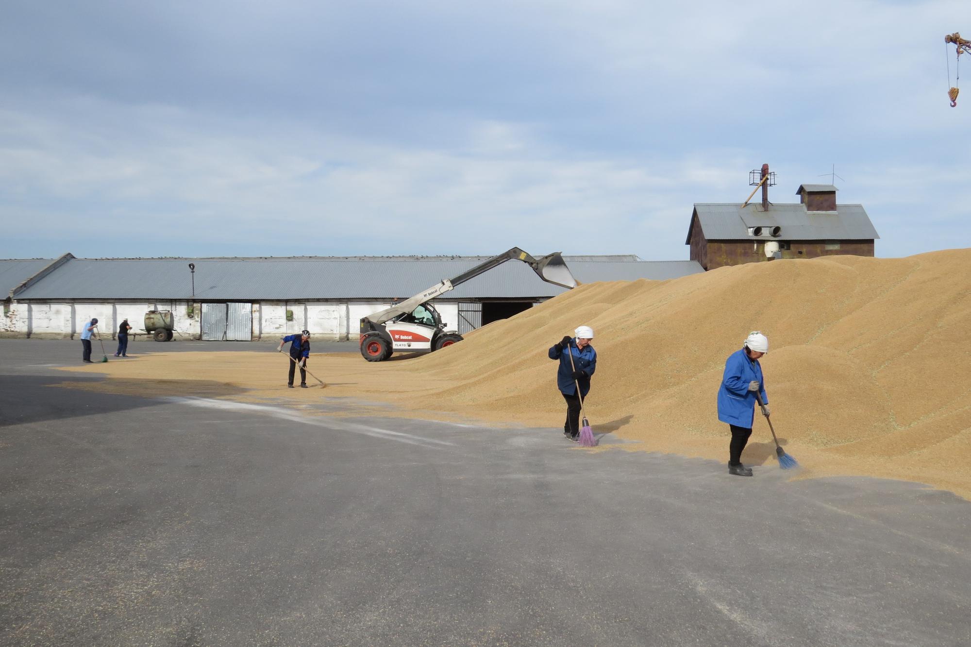 Кстати, на зернотоке ООО «Рассвет» сейчас самая что ни на есть горячая пора. Работа здесь кипит круглосуточно. Поступающее с поля зерно проходит процесс сушки и сортировки, а затем закладывается в ёмкости для хранения. До необходимых кондиций урожай здесь доводится двумя сушильно-сортировальными комплексами мощностью в 30 т и 100 т в час. К примеру, в минувшую пятницу, как рассказал нам заведующий зернотоком Алексей Владимирович Косцов, влажность только что намолоченной пшеницы составляла 19%. Этот показатель здесь снижают до 13% и только потом засыпают зерно на хранение.