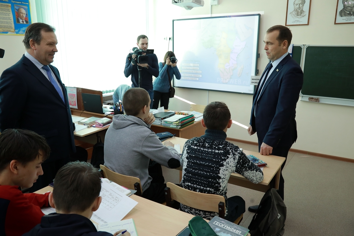 Глава региона прошел по учебным классам, побывал в кабинете физики, который оборудован по последнему слову техники: здесь есть интерактивная доска, системы электроснабжения, с помощью которых дети на практике изучают все физические процессы. Также Вадим Шумков ознакомился с работой службы безопасности в школе, заглянул в кабинеты труда, истории, информатики, спортзал, пообщался с детьми. Глава региона встретился и с педагогическим коллективом. В ходе разговора речь шла о создании новых рабочих мест в районе и в селе Нижнее, в целом, модернизации больниц в муниципалитетах, привлечении молодых врачей. Вадим Шумков подчеркнул, что развитие экономики зависит от активности местных жителей, и призвал учителей и детей оставаться на малой Родине и работать именно здесь.