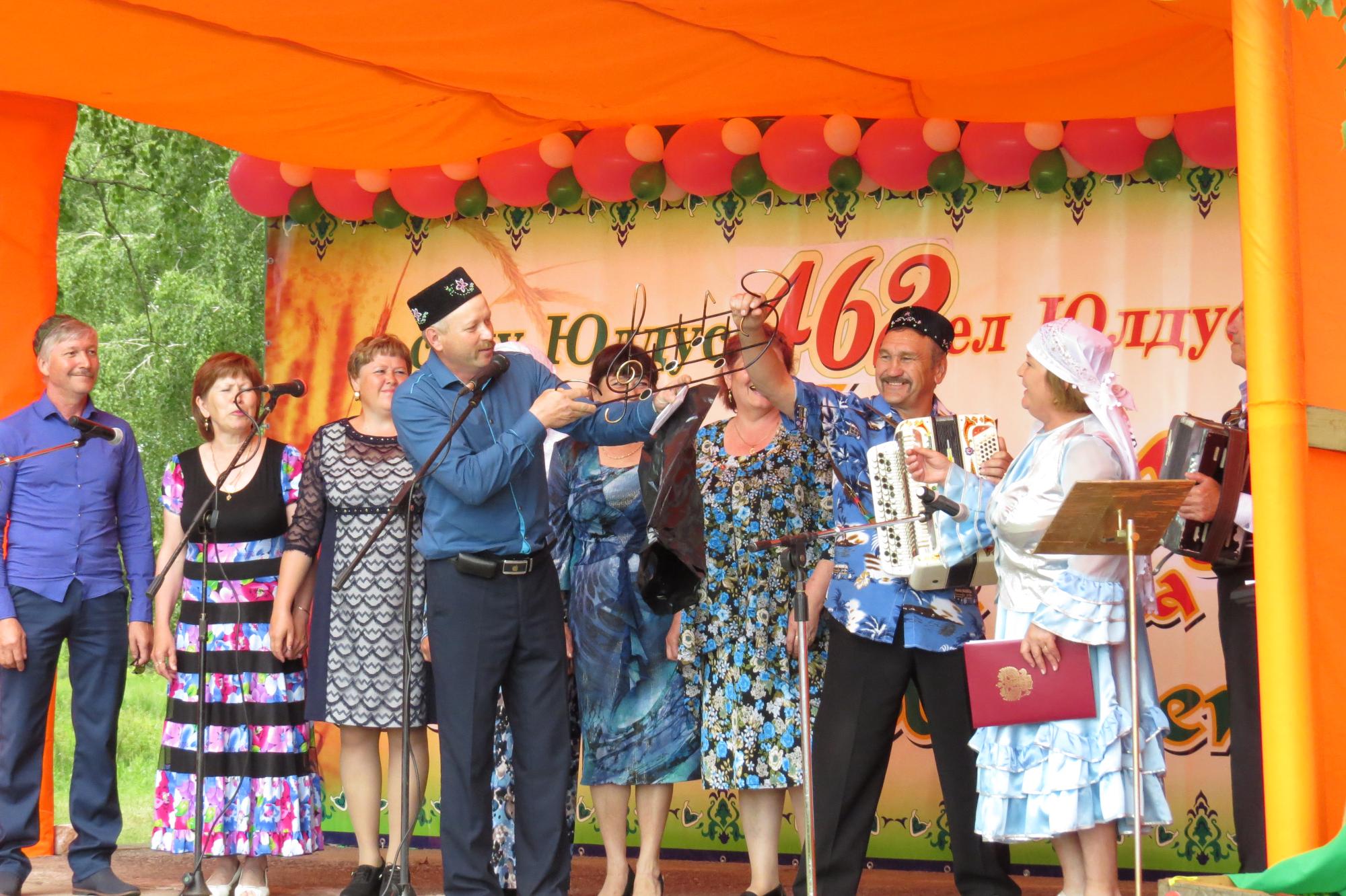 Рашид Заликаев и его резвая, хотя уже довольно взрослая кобылка Лада (ей 11 лет) стали чемпионами традиционных конных скачек. Валерий Хужин и его трёхлетняя тёзка победительницы стали вторыми, а Рафаил Булатов и 19-летний Юлдус заняли третье место в забеге. Все призёры – жители Юлдуса. В награду из рук Главы сельсовета они получили ценные призы.