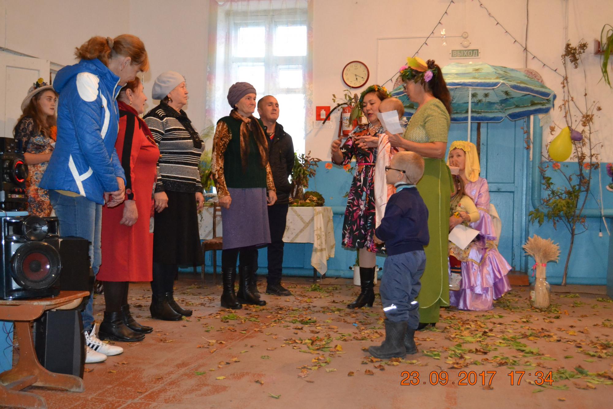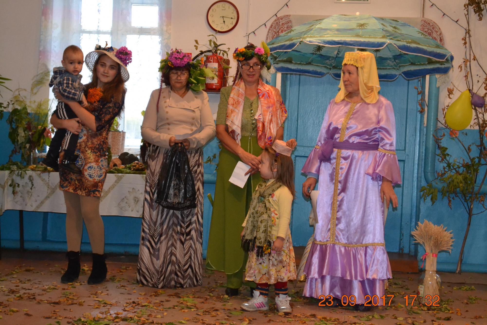 Г.Х. Хасанова (Октябрина), Адэлина Курманова (Ноябрина) и Вика Касимова (Внучка). Они поздравили односельчан с уборкой урожая на приусадебных участках. Артисты пели, читали стихи, играли со зрителями. Так, много радости и смеха вызвала разыгранная со зрителями сказка «Иван царевич и Кащей». Не осталась без внимания и выставка даров природы. Много овощей причудливых форм выросло на огороде у М.Ш. Касимовой и Арины Барашевой. А М.Х. Муслимова принесла букеты прекрасных осенних цветов.