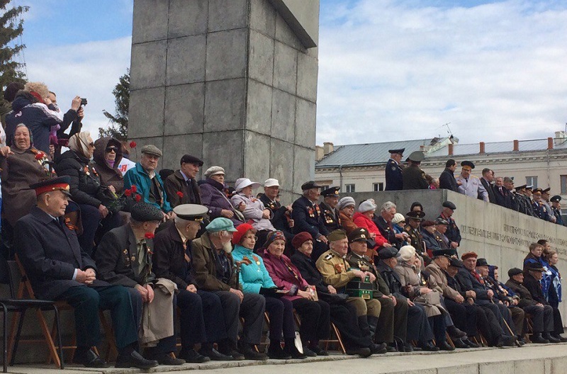 - Ветераны сегодня на площади, смотрят на Парад с самого центра, с самых почетных мест. Слава нашему народу! Да здравствует наша Победа! – восторженно произносит  Владимир Александрович Шавкуленко, гвардии старшина, награжден Орденом Ленина, Орденом Трудового Красного знамени, заслуженный тракторист России. Во время войны ему было еще только 12 лет. Сегодня на празднике Владимир Александрович с музыкальном инструментом – баяном. Конечно, попросили сыграть для нас несколько знакомых и дорогих сердцу композиций. С удовольствием согласился и сорвал шквал аплодисментов прохожих.