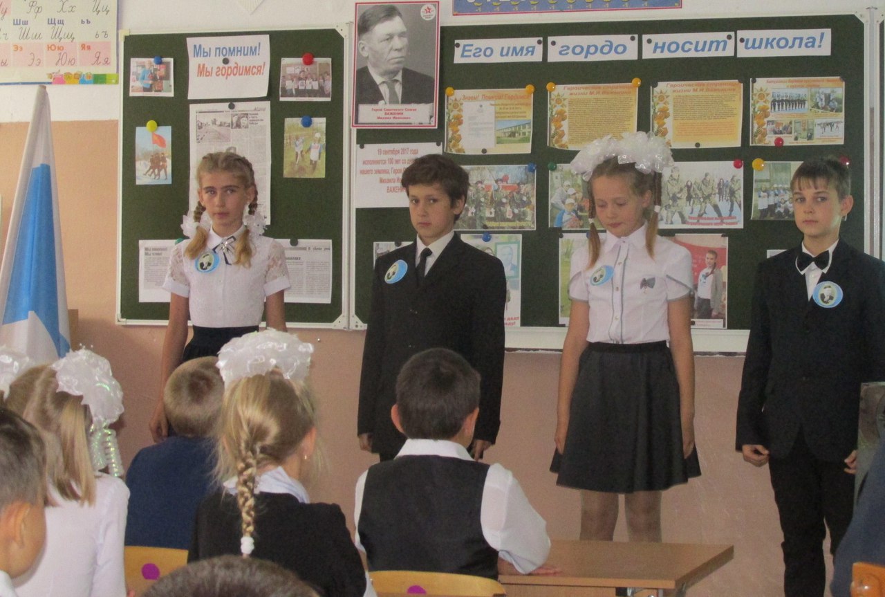 Во второй половине дня состоялось торжественное мероприятие «Его имя гордо носит школа!» Участниками встречи стали ученики начальных классов, а организовали и провели волонтёры школы под руководством зам. директора по ВР О.А. Яговитиной. На мероприятие были приглашены родные героя-земляка – дочь Г.М. Кузнецова, внуки – Юрий, Антон и Михаил, председатель ветеранской организации с. Батурино Н.А. Александрова, а также заместитель начальника Управления образования района А.Ю. Брагина, ведущий специалист по работе с молодёжью О.А. Кокшарова и методист Управления образования В.В. Блинова.