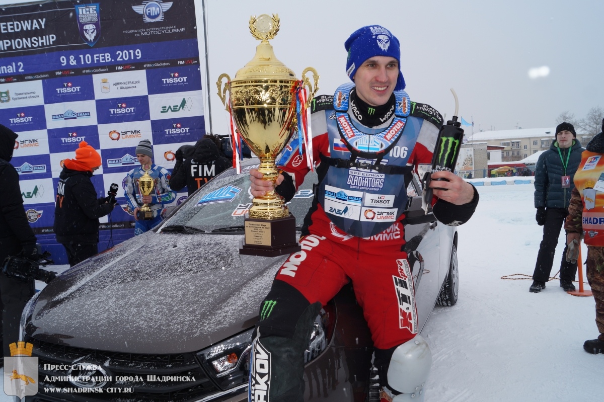 Соревнования второго финала чемпионата мира по ледовому спидвею (FIM Ice Speedway World Championship) 10 февраля в Шадринске завершились победой нашего земляка, действующего чемпиона мира Дмитрия Колтакова. Он стал не только обладателем кубка, но и получил приз от главного партнера гонок — Уральской горно-металлургической компании – автомобиль LADA Vesta. Серебро сегодняшнего этапа у Дмитрия Хомицевича. Бронза - у еще одного нашего земляка, дебютанта мирового чемпионата Константина Коленкина.