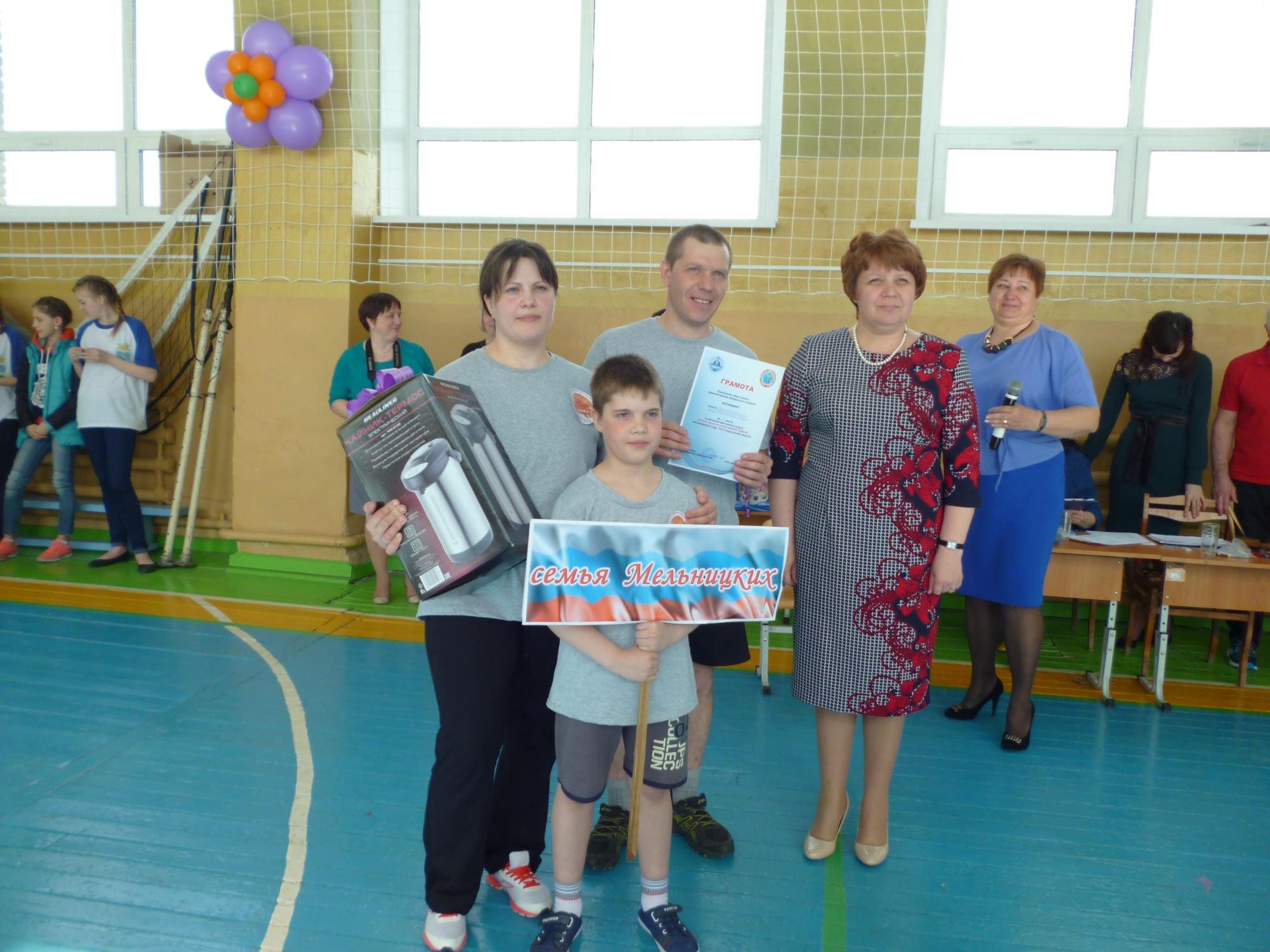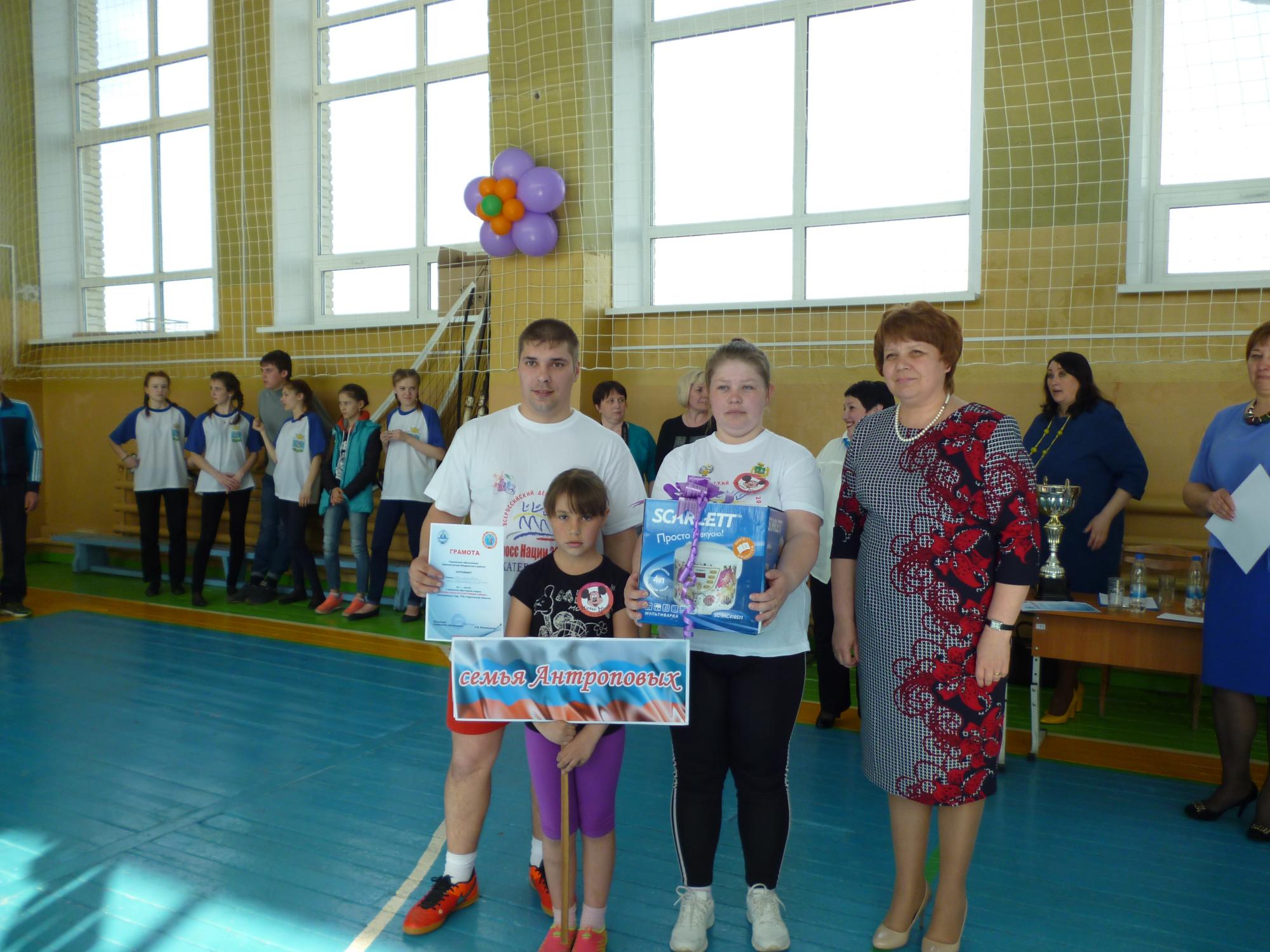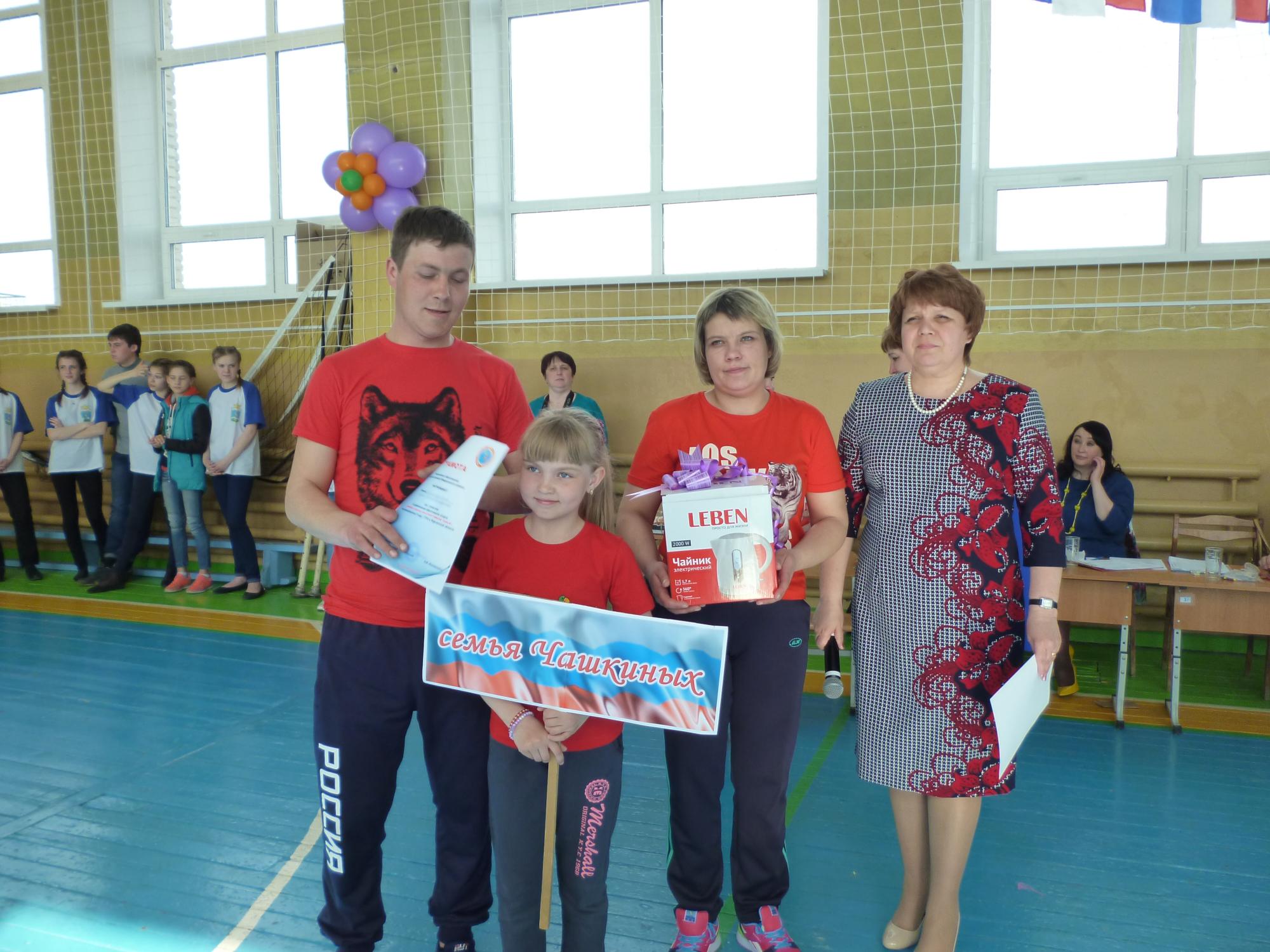И вот самый волнующий момент — награждение призёров и победителей: на третьем месте семья Павла, Евгении Викторовны и Владимира Николаевича Мельницких (Краснозвездинская), на втором — Ксения, Ольга Сергеевна и Андрей Николаевич Антроповы (Красномыльская школа). А первое место и переходящий кубок в этом году завоевала семья Нины, Ирины Сергеевны и Дмитрия Сергеевича Кармановых. Победителям было предоставлено право опустить флаг соревнований.