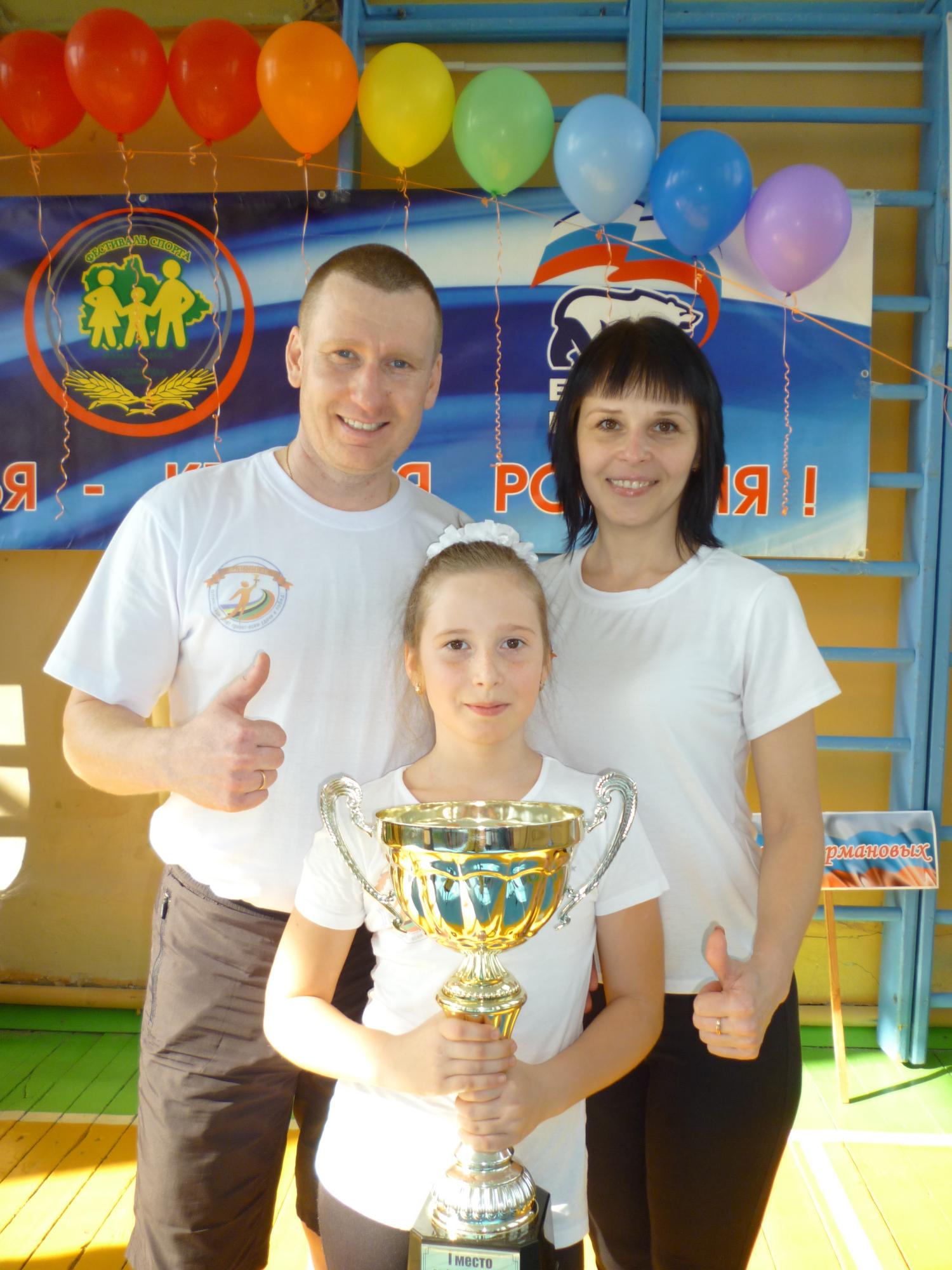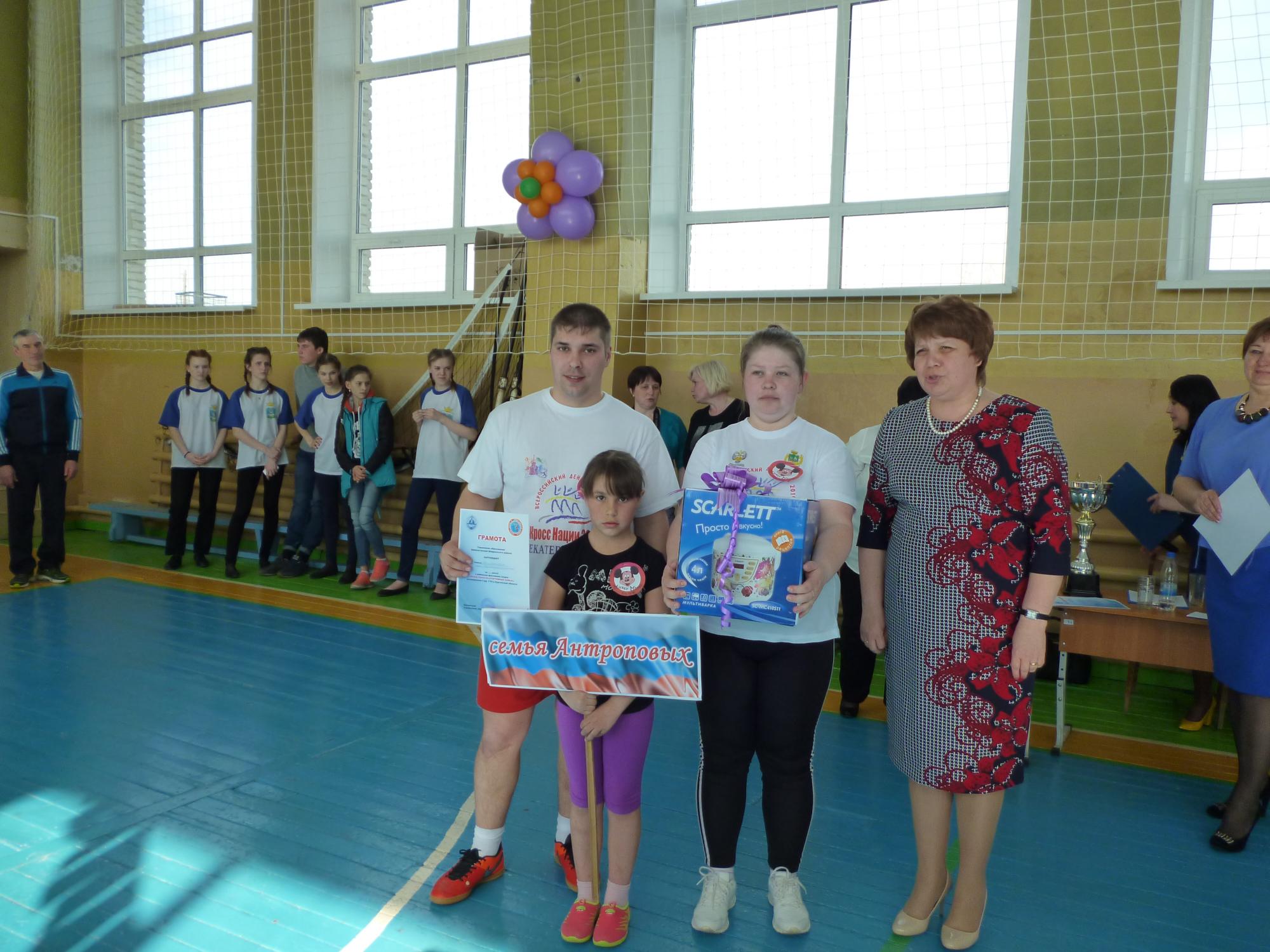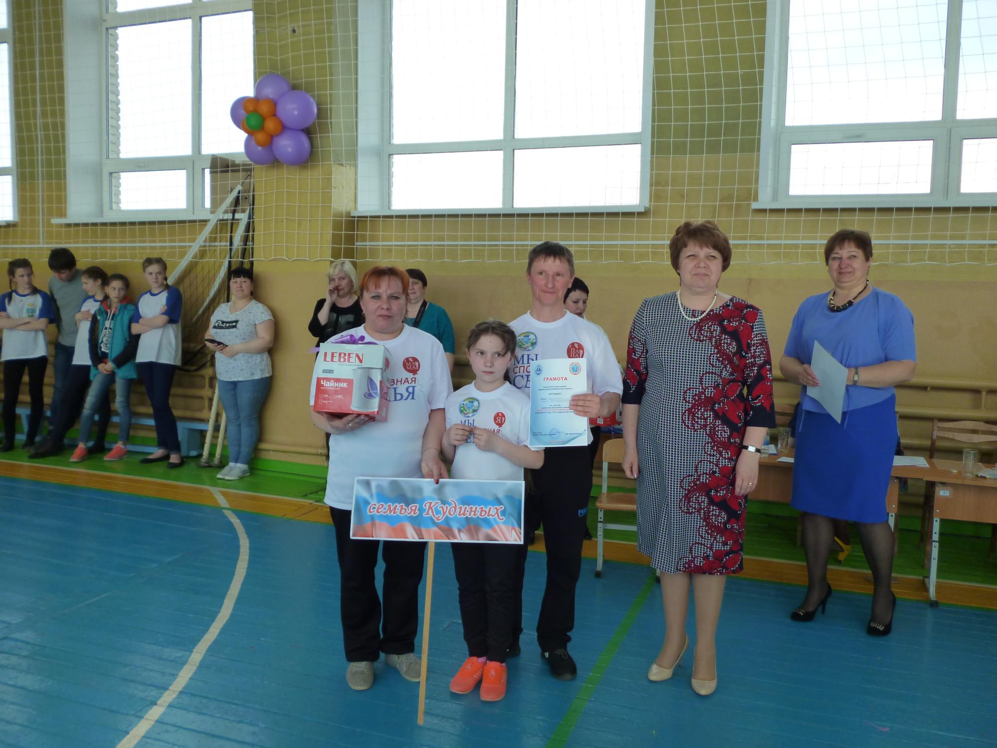 И вот самый волнующий момент — награждение призёров и победителей: на третьем месте семья Павла, Евгении Викторовны и Владимира Николаевича Мельницких (Краснозвездинская), на втором — Ксения, Ольга Сергеевна и Андрей Николаевич Антроповы (Красномыльская школа). А первое место и переходящий кубок в этом году завоевала семья Нины, Ирины Сергеевны и Дмитрия Сергеевича Кармановых. Победителям было предоставлено право опустить флаг соревнований.
