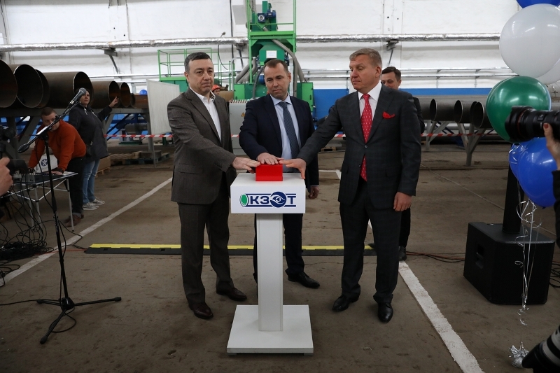 Выступавшие нажали символическую красную кнопку, дав старт производственному процессу: в дробеструйную машину, для подготовки поверхности к нанесению изоляции, вошли первые погонные метры трубы.