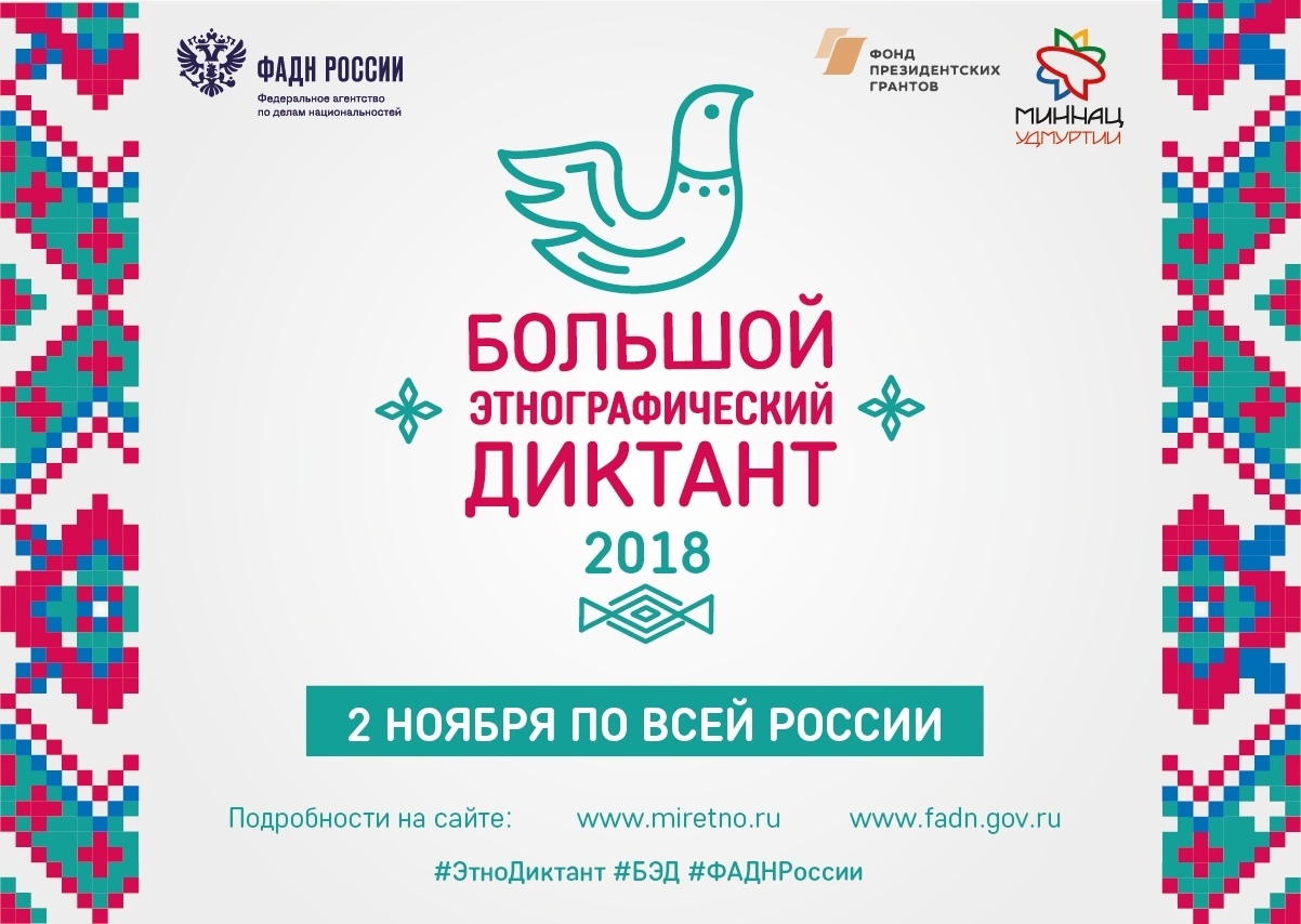 Проект осуществляется при поддержке Фонда президентских грантов. Организаторами «Большого этнографического диктанта» выступают Федеральное агентство по делам национальностей и министерство национальной политики Удмуртской Республики. Партнером Диктанта в этом году выступает Федеральное агентство по делам Содружества Независимых Государств, соотечественников, проживающих за рубежом, и по международному гуманитарному сотрудничеству.