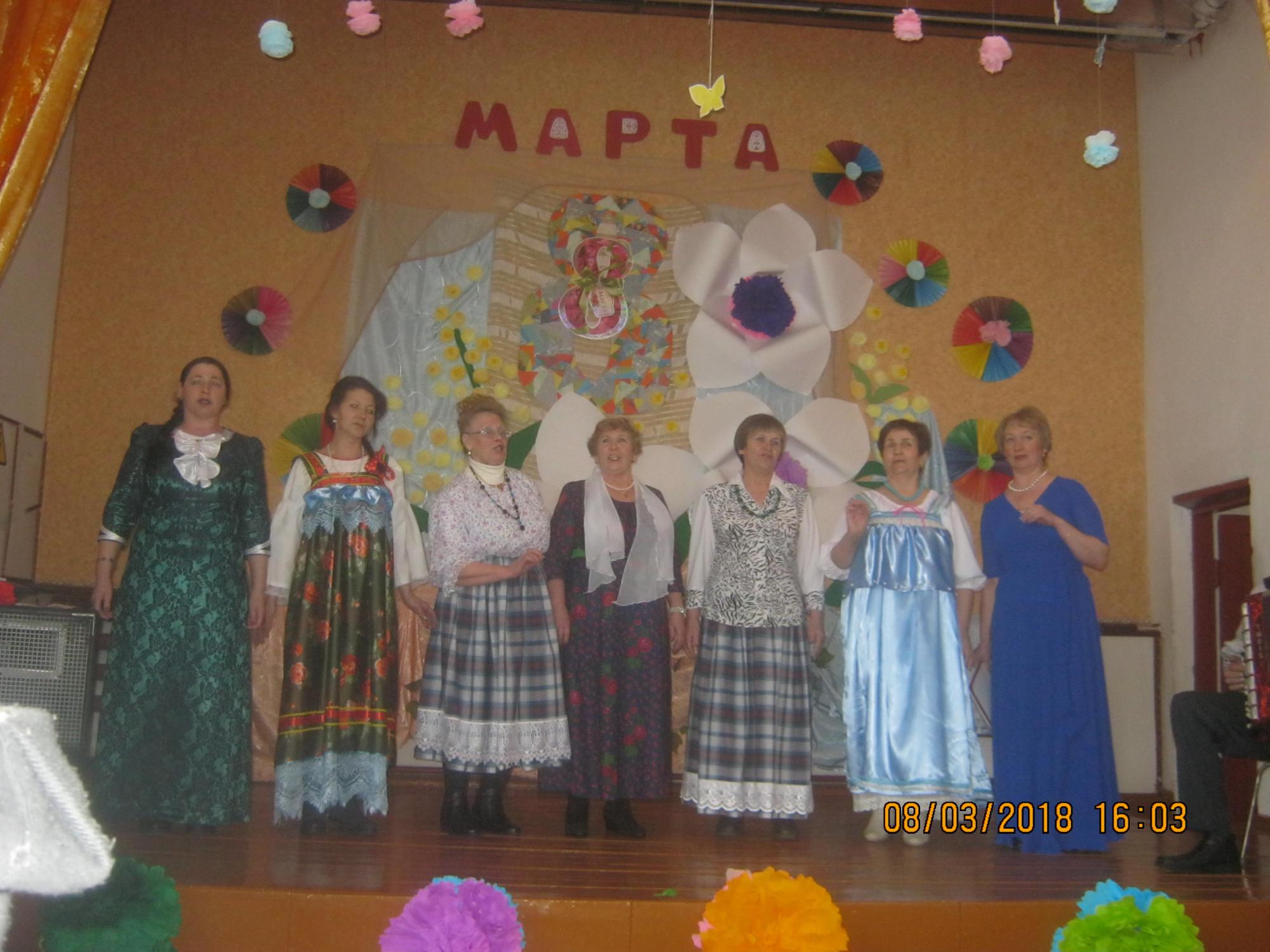 Конечно же, и вокальная группа «Родники» не остались в стороне в такой важный день. Ещё 1 марта мы выступали на сцене с. Красномыльское, участвуя в районном смотре «Любовь, комсомол и весна», где были награждены дипломом за театрализованную программу, и вот уже 8 марта мы на сцене родной деревни с концертной программой. Был очень напряжённый период подготовки сразу к двум выступлениям, но женщины справились на отлично. А помощником и вдохновителем стал наш музыкальный руководитель Б.А. Ткачук. Своих односельчанок порадовали весёлыми, задорными песнями, но позволили себе чуть-чуть приятной ностальгической грусти. В ярких, нарядных костюмах на сцене, оформленной удивительными цветами, гирляндами из множества цветов и бабочек, воздушных шаров и цветущих деревьев... Всё это создало сказочную весеннюю атмосферу, мечту, которая живёт в душе каждой женщины.