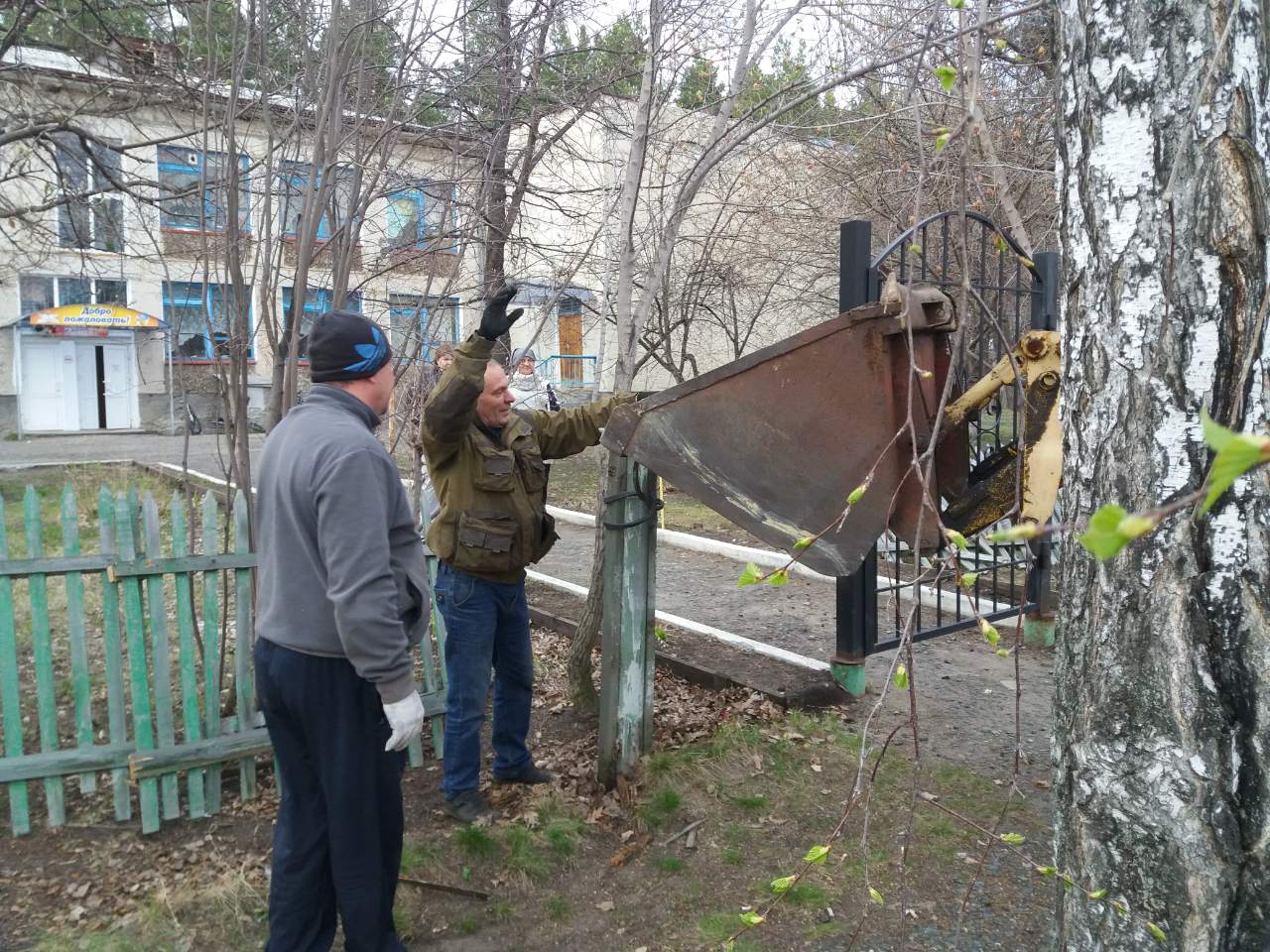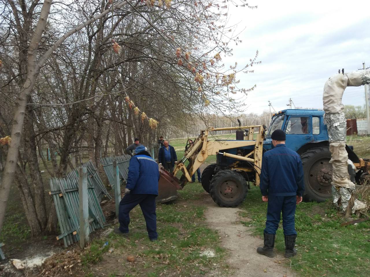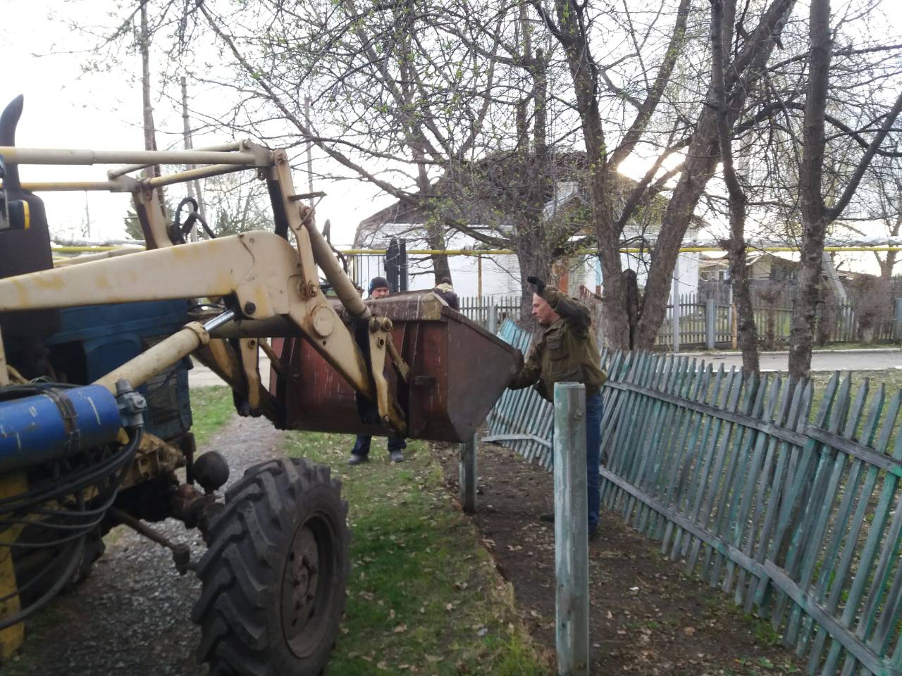 Помощь в проведении работ оказали и родители. Особенно потрудились папы и мамы учеников 9-го класса (классный руководитель Т.Е. Осокина). Собравшись вместе дружной командой, они демонтировали старый деревянный забор, установили столбики, а попутно убрали разросшиеся ветви деревьев. При этом использовалась и спецтехника – трактор и манипулятор.