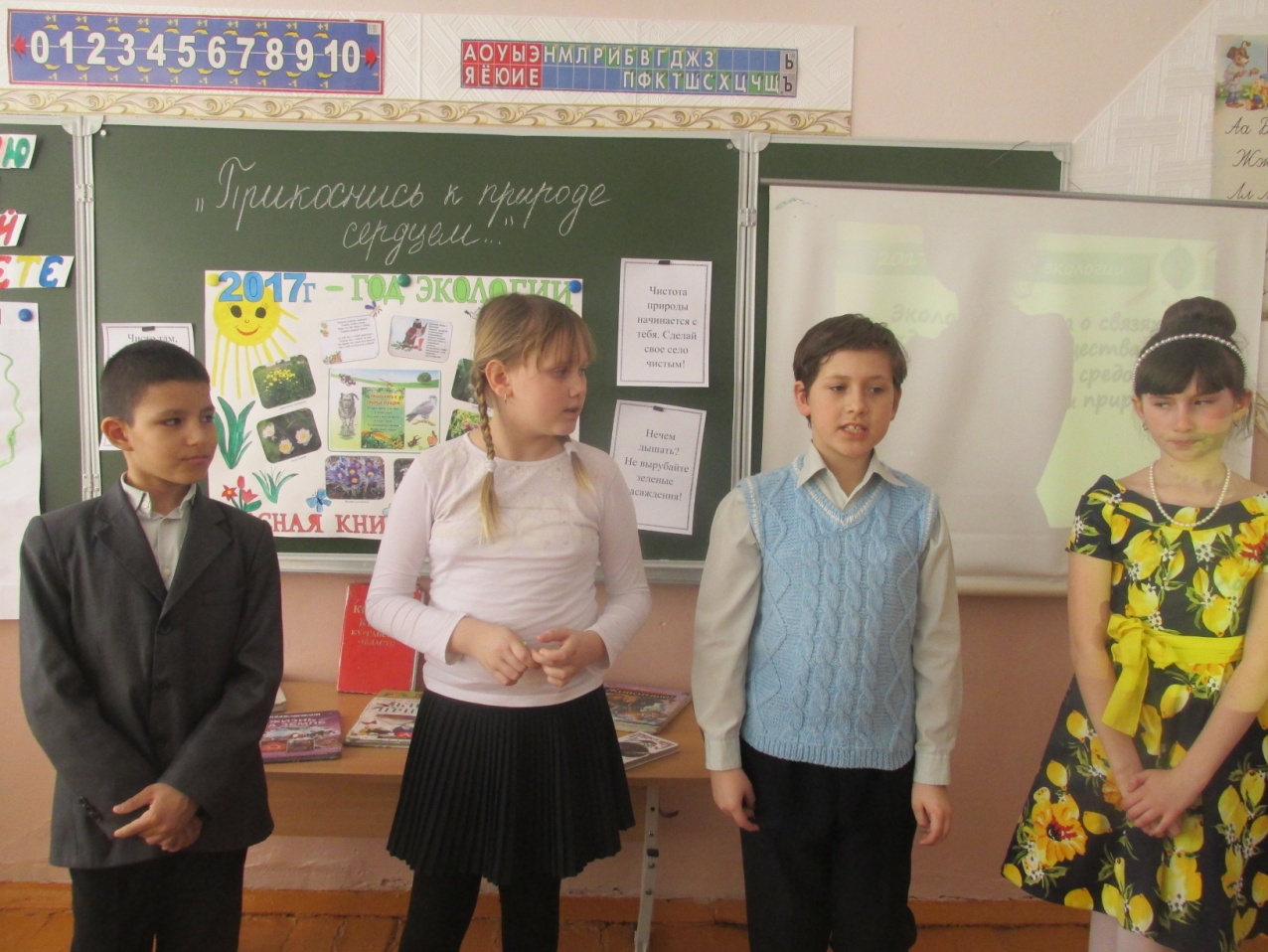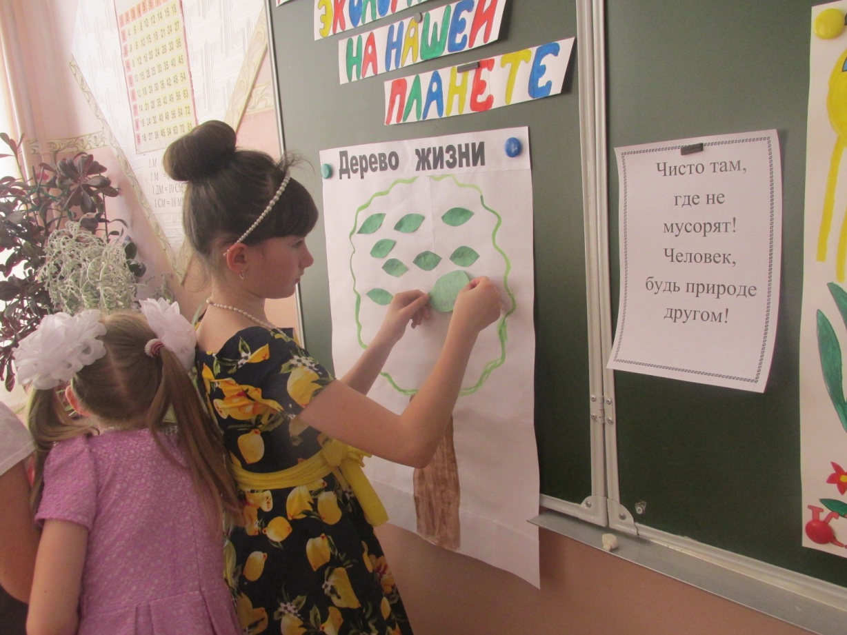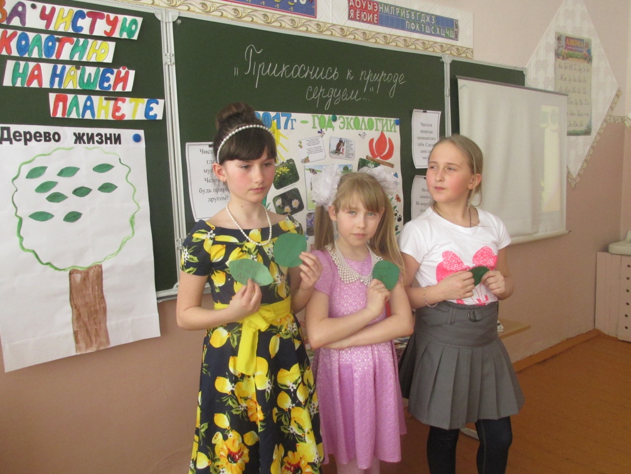 Как известно, 2017-й — Год экологии. Недавно в нашем объединении прошло мероприятие на экологическую тему «Прикоснись к природе сердцем». Ребята заранее нарисовали плакат, рассказали историю появления Красной книги, каждый подготовил небольшое выступление. А после просмотра фильма «Улыбка природы» дети обсудили его. Было приятно, что каждый ребёнок понял смысл, а значит, будет с вниманием и заботой относиться ко всему живому. Ребята заполнили дерево жизни зелёными листиками, где на каждом написали правила поведения на природе: не ломать деревья, не рвать цветы, не обижать животных, не разорять гнёзда, не разбрасывать мусор. А в конце встречи послушали песню на стихи Р. Рождественского «Просьба», подвели итог нашей беседы и познакомились с книгами о живой природе, которые были представлены на выставке.
