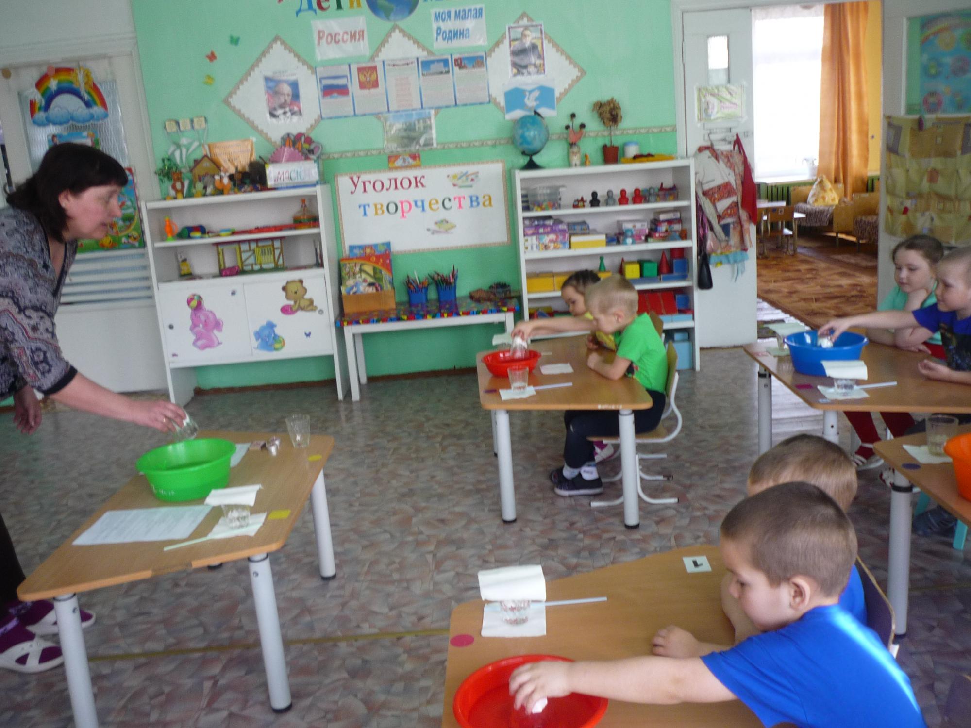 Воспитанники подготовительной группы с воспитателем Т.Ю. Тугановой с помощью несложного эксперимента расширили свои представления о свойствах  магнита. Ребята средней группы под руководством воспитателя Ю.С. Косовских изучали основные свойства воздуха и его значимость для человека. Проводя различные опыты, дети выяснили, что невидимый глазу воздух имеет свой вес и может занимать весь стакан, не пропуская в него воду. Самым младшим деткам воспитатель Н.А. Суставова помогала конструировали птичек.