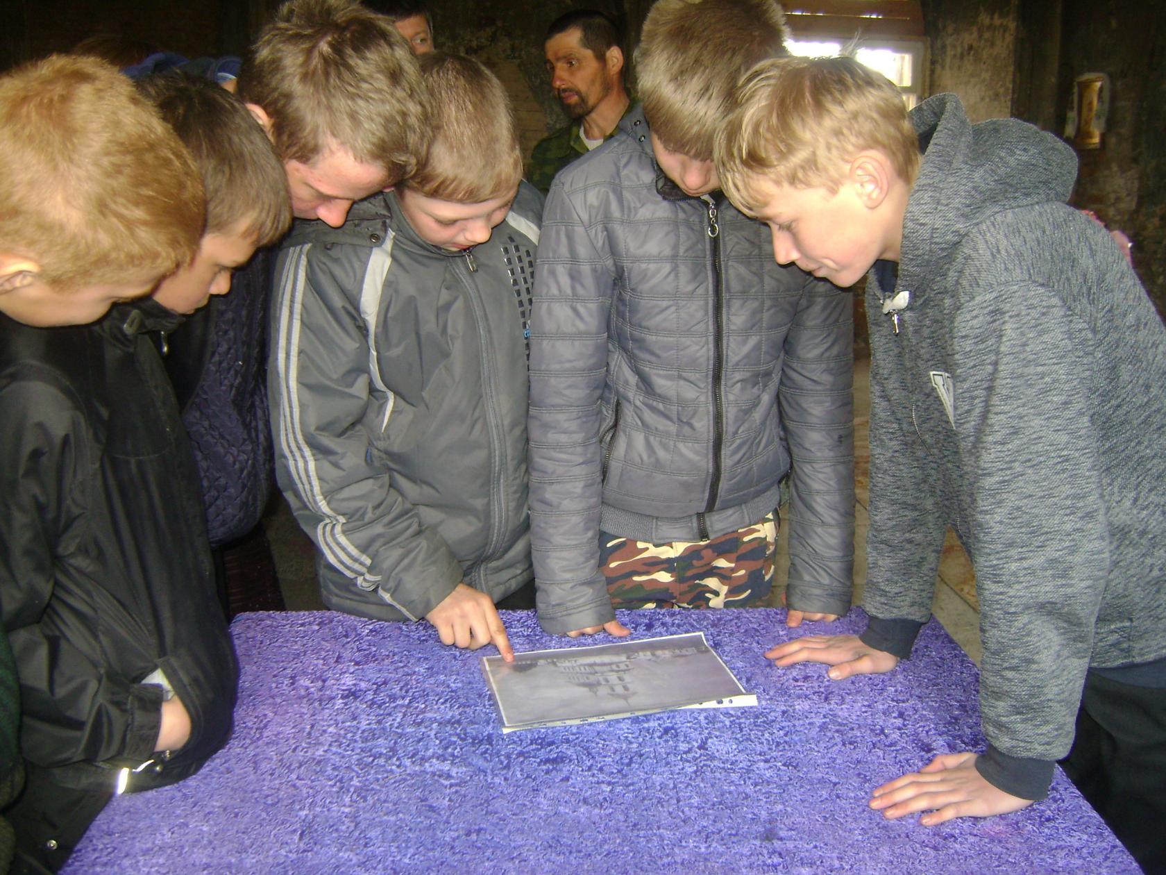 Он же рассказал ребятам (а среди школьников были исключительно мальчишки) об истории местной церкви. Особенно гостей заинтересовала фотография, где храм был ещё действующим, а расположенные рядом постройки – в целости и сохранности.