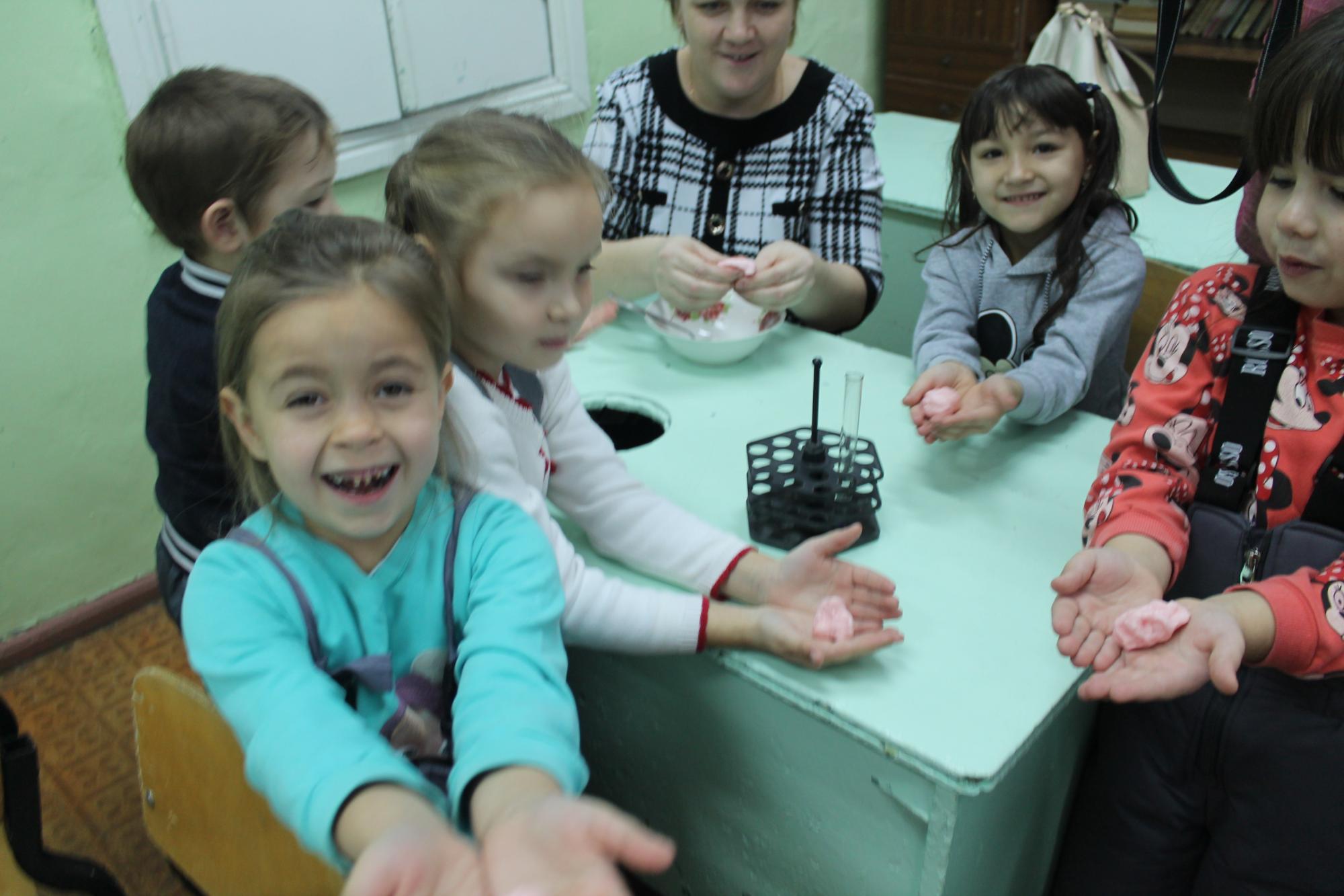 В следующем кабинете у каждого ребёнка была возможность померить противогаз и подержать макет автомата Калашникова. В кабинете химии совместно с учителем Т.А. Пястоловой смогли сделать «лизуна». Дети были в восторге от того, что смогли своими руками изготовить такую игрушку. В школьной библиотеке её хозяйка О.В. Карбышева рассказала ребятам, как нужно относиться к книгам.