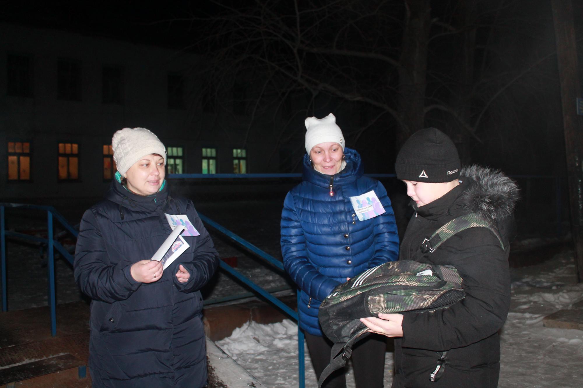 Утро 13 января для учащихся Краснонивинской школы началось не совсем обычно. Представители родительского комитета школы С.А. Юров­ских и В.В. Аныгина, несмотря на 25-градусный мороз, пришли в школу к 7.30, чтобы провести акцию среди учащихся школы «Стань заметней». Они просили ребят показать световозвращающие элементы (фликеры) на одежде или рюкзаках, а также проводили с учащимися разъяснительные беседы о необходимости использования этих элементов для соб­ственной безопасности. Каждый ребёнок получил листовку «Пешеход, засветись!»