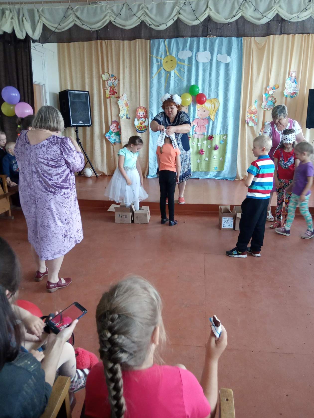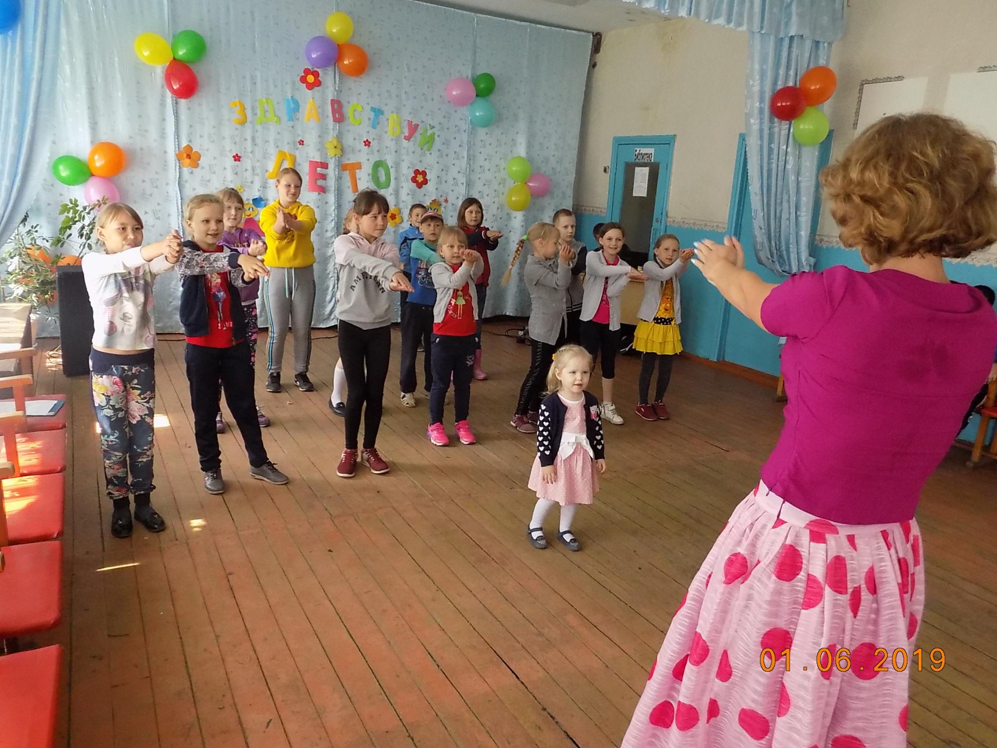 В клубе Верхозино дети совершили путешествие в мир летнего детства на «Волшебном экспрессе», на различных станциях танцевали и отгадывали мелодии, а в завершение устроили праздничный фейерверк из воздушных шаров.