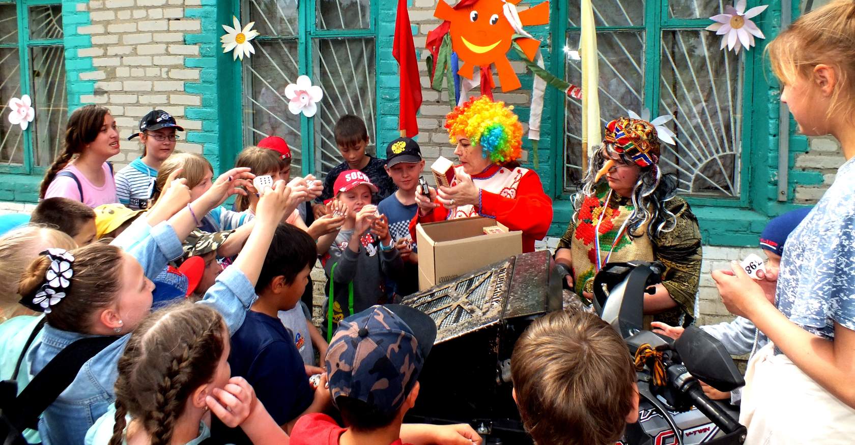 В первый день календарного лета в Краснозвездинском КСДЦ прошёл единый день профилактики «Ладошки к солнцу». В нём приняли участие представители многих служб, которые рассказали детям о мерах предосторожности в каникулы, предупредили о опасностях на улицах и в лесу. После игровой программы победители совершили круг почёта на квадроцикле по стадиону (с водителем А.П. Румянцевым).