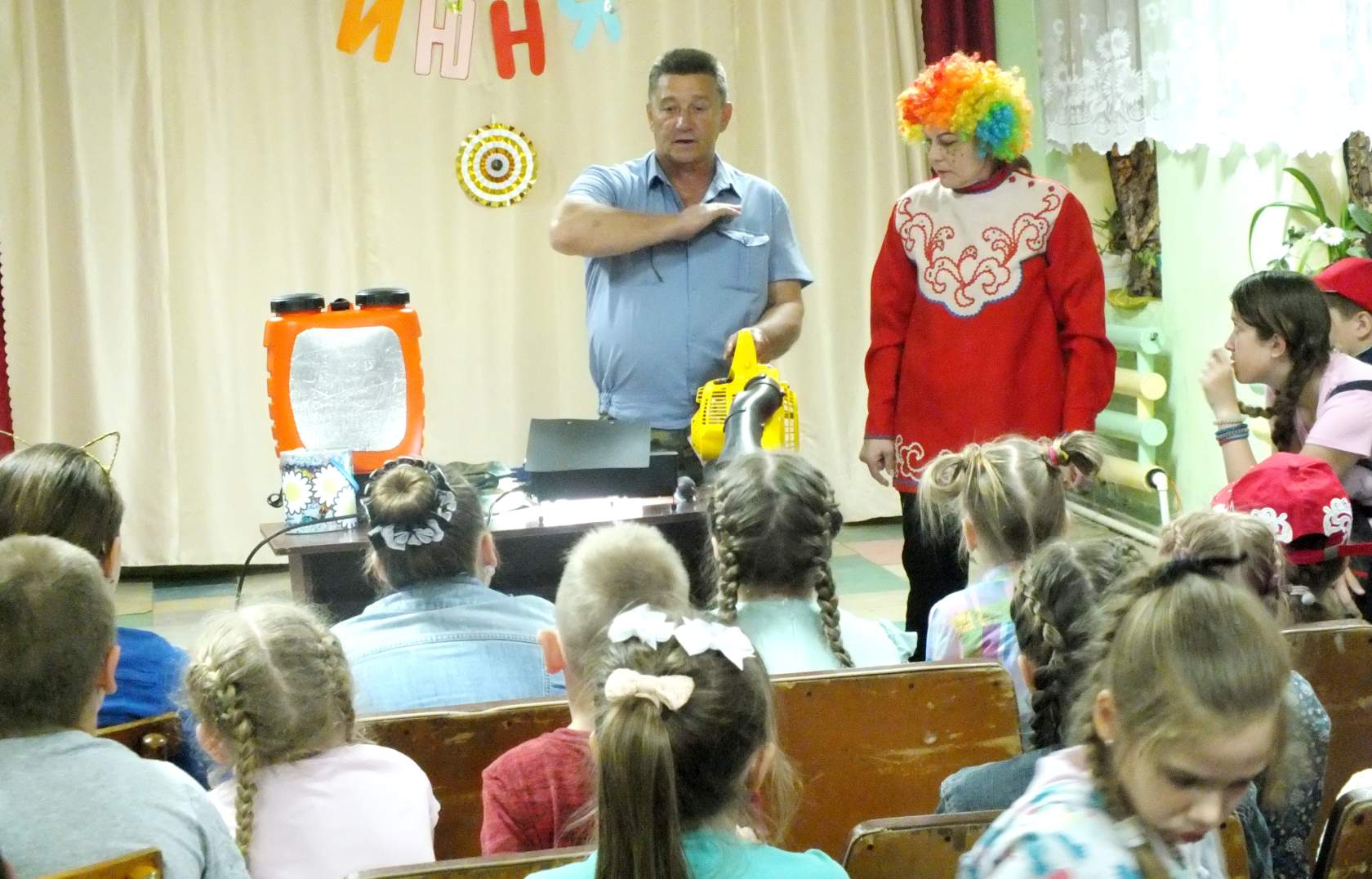 Мингалёвцы в тот день открыли летний сезон и оздоровительный лагерь «Солнышко» при школе. В игровой программе детям особенно понравился конкурс «какой я красивый», где они примерили яркие парики и другие аксессуары. Праздник завершился фотосессией в бутафорских масках, мыльными пузырями, а родители пробовали силы на спортивных тренажёрах.