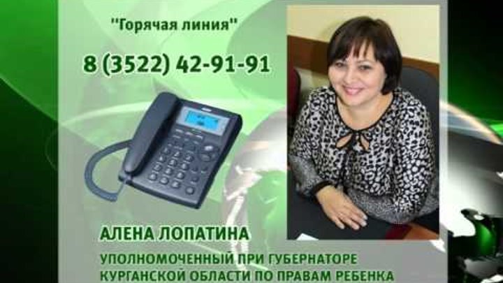 21 ноября с 8.00 до 12.00 уполномоченным при губернаторе Курганской области по правам ребенка Алёна Лопатина проведет горячую телефонную линию по вопросам подвоза детей в образовательные организации. Телефоны горячей линии: 8 (3522) 41-32-64, 46-08-93.