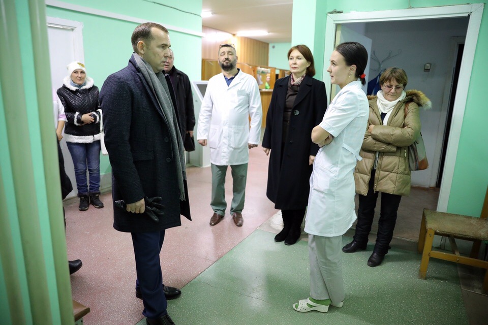 Осмотр медицинского учреждения Вадим Шумков начал со здания детской поликлиники. Оно было построено в 2008 году, но функционировало недолго, начало разрушаться. Было принято решение перевести прием в здание взрослой поликлиники. Сегодня помещениям требуется серьезный ремонт. Вадим Шумков поручил и.о. директора Департамента здравоохранения Ларисе Кокориной вместе с главой Звериноголовского района Михаилом Шейгецом и руководителем ЦРБ проанализировать проектно-сметную стоимость работ и представить на рассмотрение соответствующие документы.