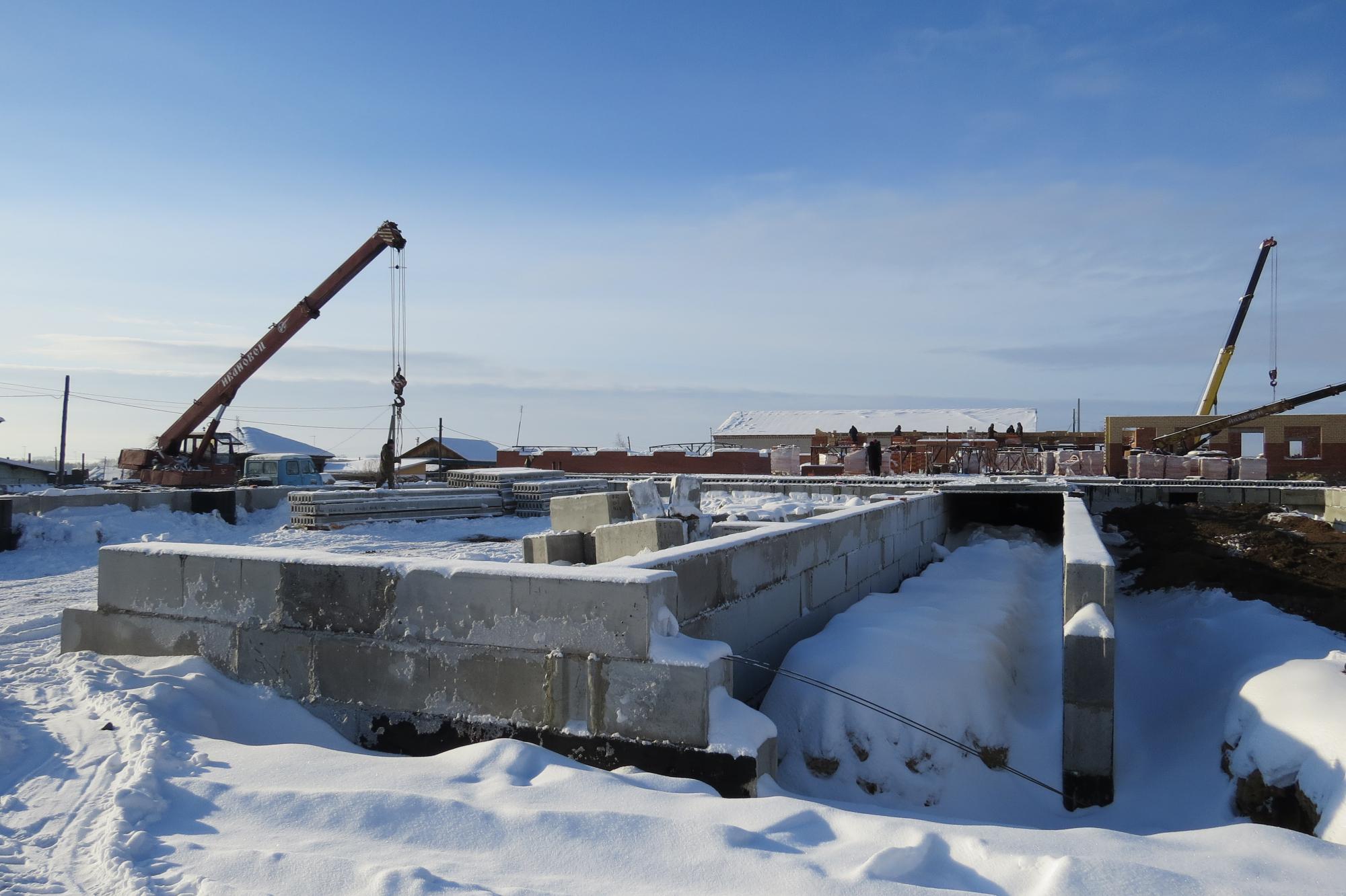 В завершающую стадию входит устройство стен техподполья блока 2 (спортивный, актовый зал, пищеблок). Отметим, что на этой части объекта трудятся местные строители – работники Канашинского РСП под руководством С.В. Воложанина. Кстати, то, что это предприятие подключилось к возведению здания, сыграло немаловажную роль в возобновлении строительства с хорошими темпами после временной «заморозки».
