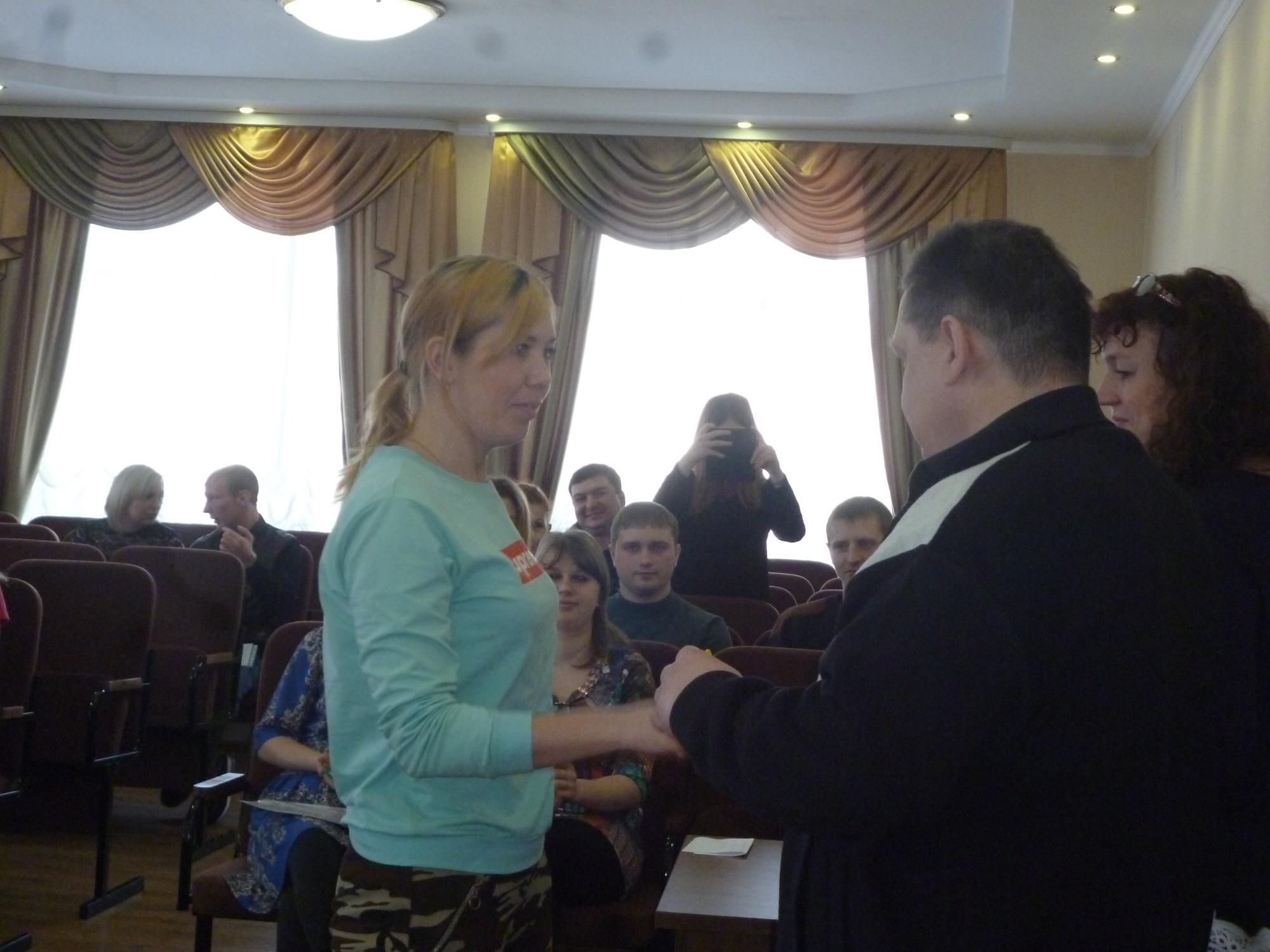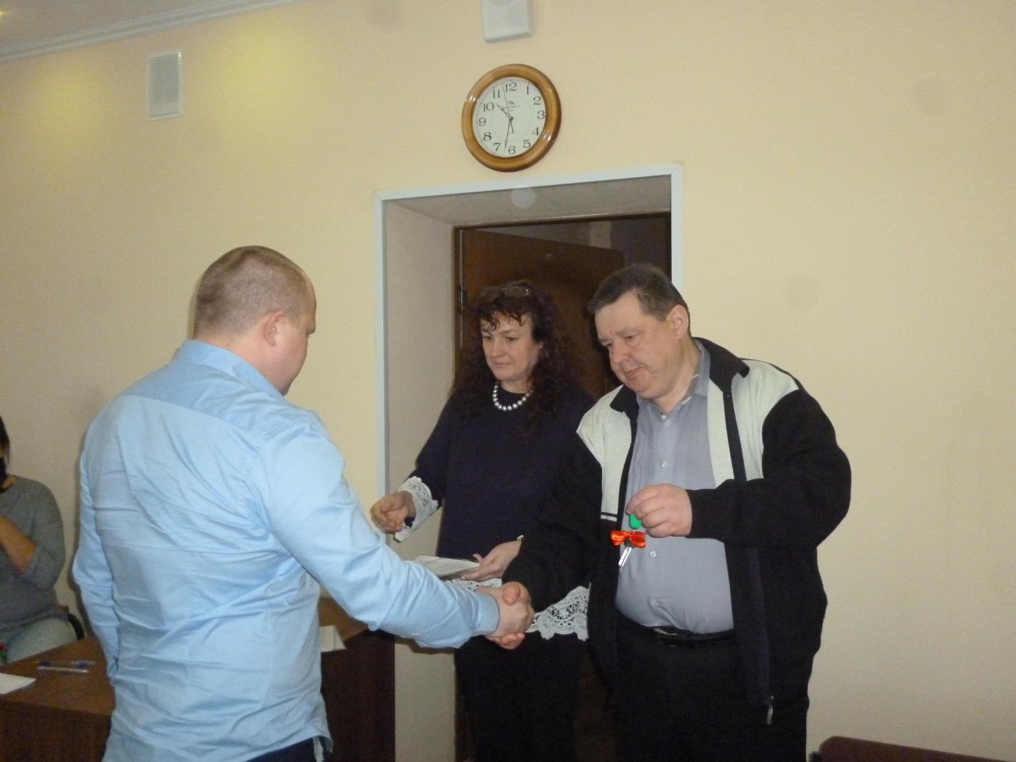 С напутствием и поздравлением к счастливым обладателям квартир обратилась Л.И. Воложанина, пожелала счастья в новом жилье. А потом молодые люди получили ключи и договоры на квартиры из рук Н.А. Филонец и