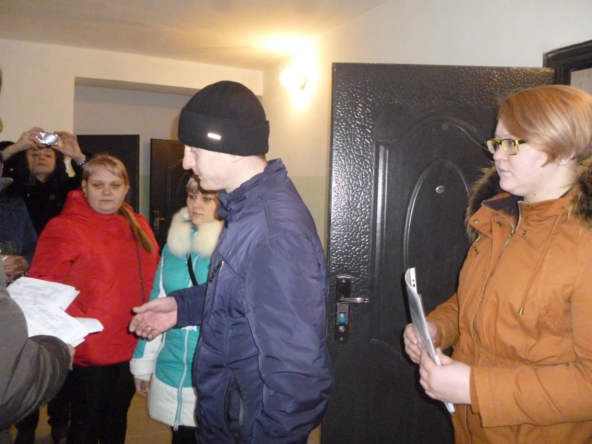 С.М. Гусев объяснил собравшимся, что они получают жильё по договору специализированного найма на пять лет. Если в течение этого времени жильцы будут правильно содержать квартиру и вовремя оплачивать все коммунальные платежи, по истечении этого срока с ними будет заключён договор социального найма, который даёт право на приватизацию квартиры.