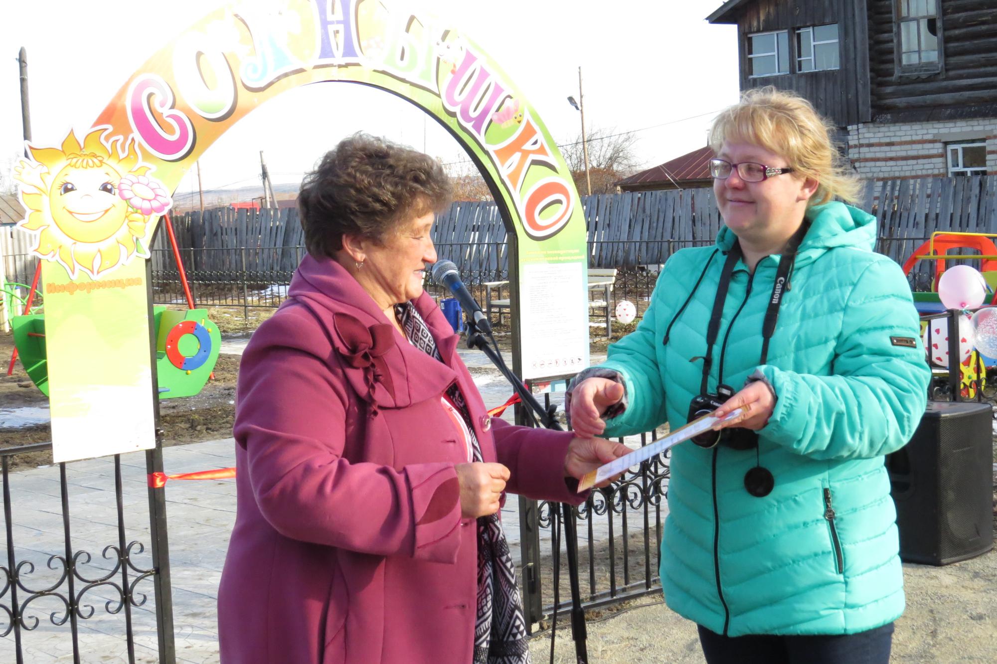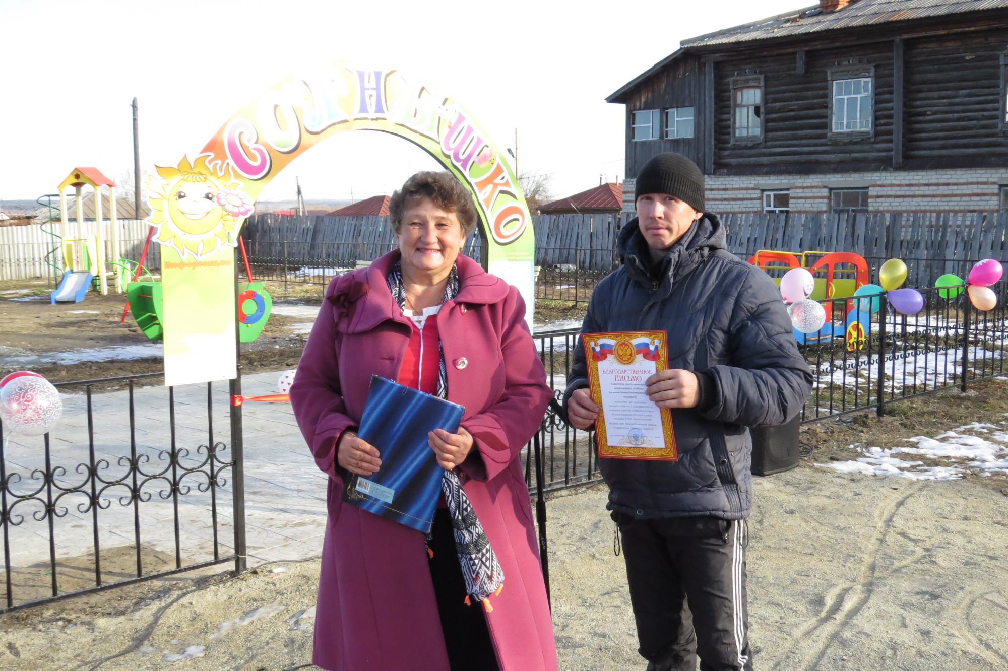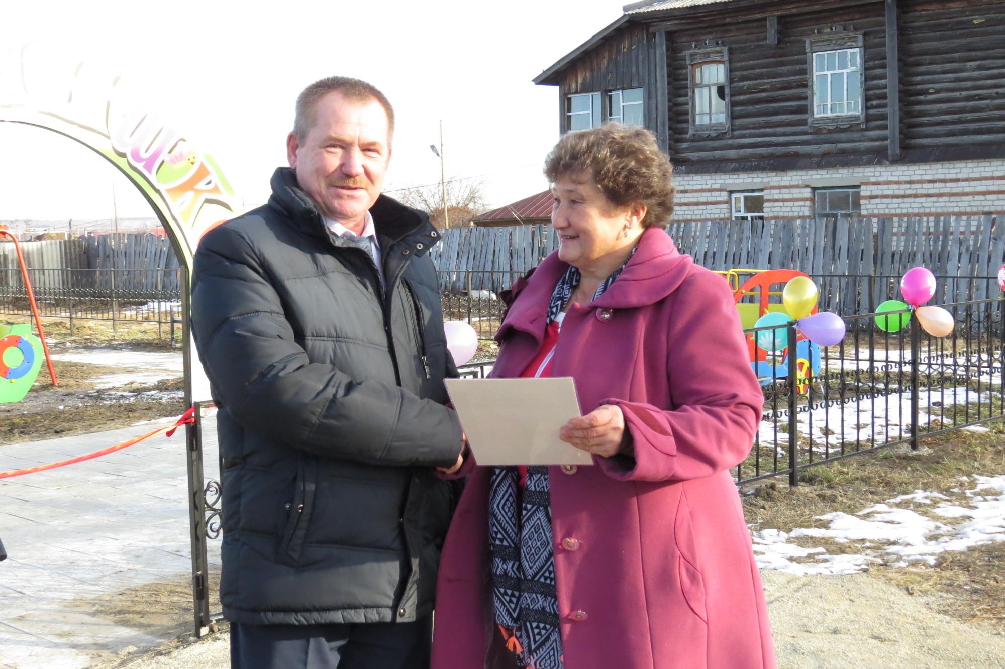 Руководство сельсовета А.М. Косовских поблагодарил за активность, а также выразил уверенность в том, что пустовать этот объект никогда не будет. Во-первых, место для площадки выбрали бойкое, в самом центре села, напротив клуба. Во-вторых, ребятишек в селе много, даже появилась потребность в дополнительной дошкольной группе, открытия которой малыши и их родители ждут в скором времени. Ну, а чтобы находиться на площадке деткам было ещё интереснее, замглавы передал И.Г. Пырьевой от Администрации района сертификат на приобретение необходимого инвентаря.