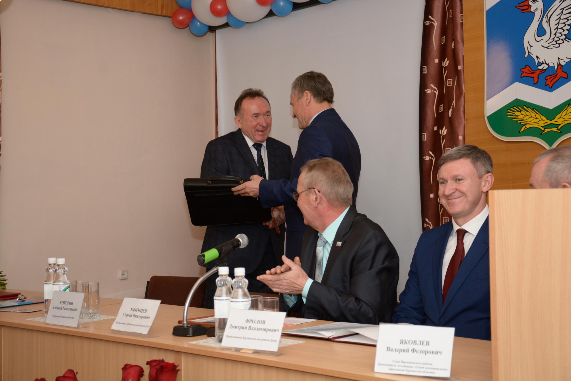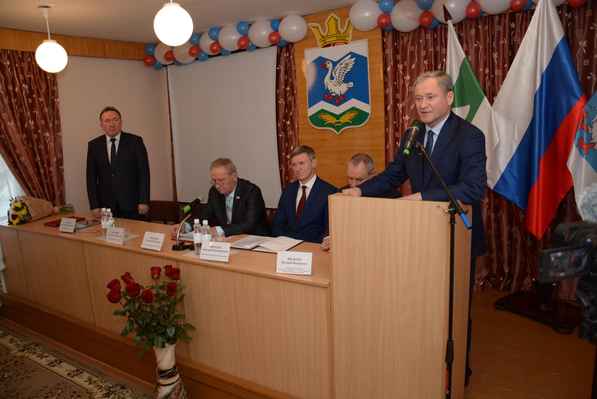 В церемонии приняли участие Губернатор Курганской области Алексей Кокорин, председатель областной Думы Дмитрий Фролов, руководитель ассоциации «Совет муниципальных образований» Валерий Яковлев, депутаты областного парламента Александр Брюханов, Валерий Порубов, Глава города Шадринска Людмила Новикова. В большом зале Администрации района также собрались представители Правительства Курганской области, руководители федеральных и областных структур, Главы муниципальных районов, почётные граждане района, Главы сельсоветов, члены общественной палаты, руководители предприятий, учреждений, организаций, предприниматели, представители политических, общественных и религиозных объединений, средства массовой информации.