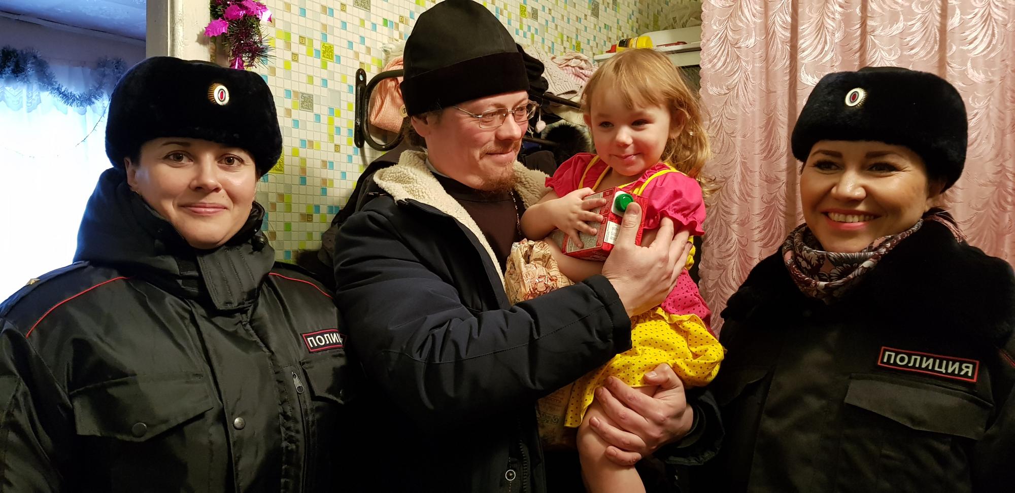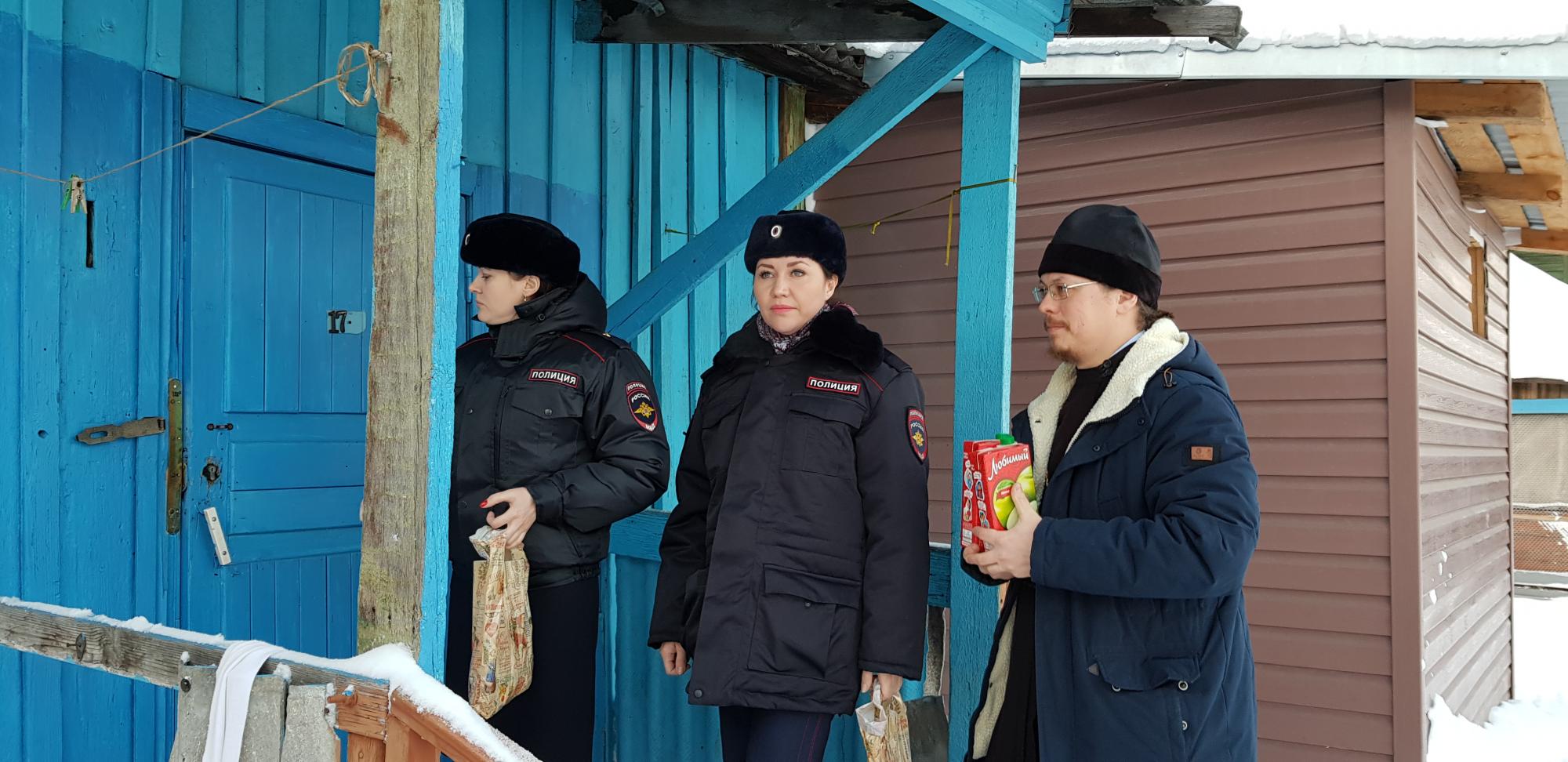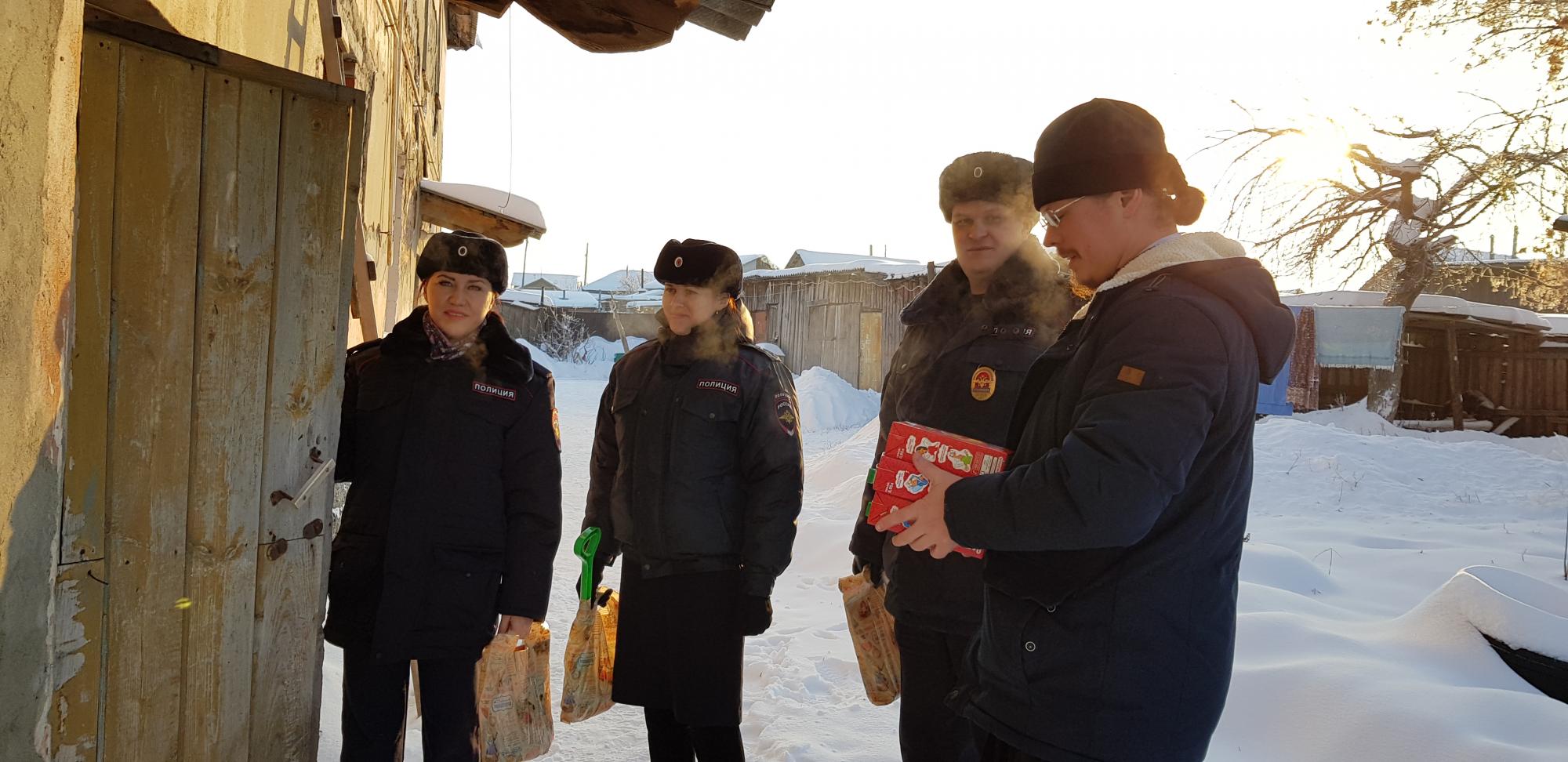 В преддверии новогодних праздников в рамках ежегодной всероссийской акции «Полицейский Дед Мороз» сотрудники правоохранительных органов совместно с секретарём Шадринской епархии, членом Общественного совета при МО МВД России «Шадринский» отцом Константином посетили по месту жительства семьи, состоящие на ведомственном учёте и находящиеся в непростой жизненной ситуации.