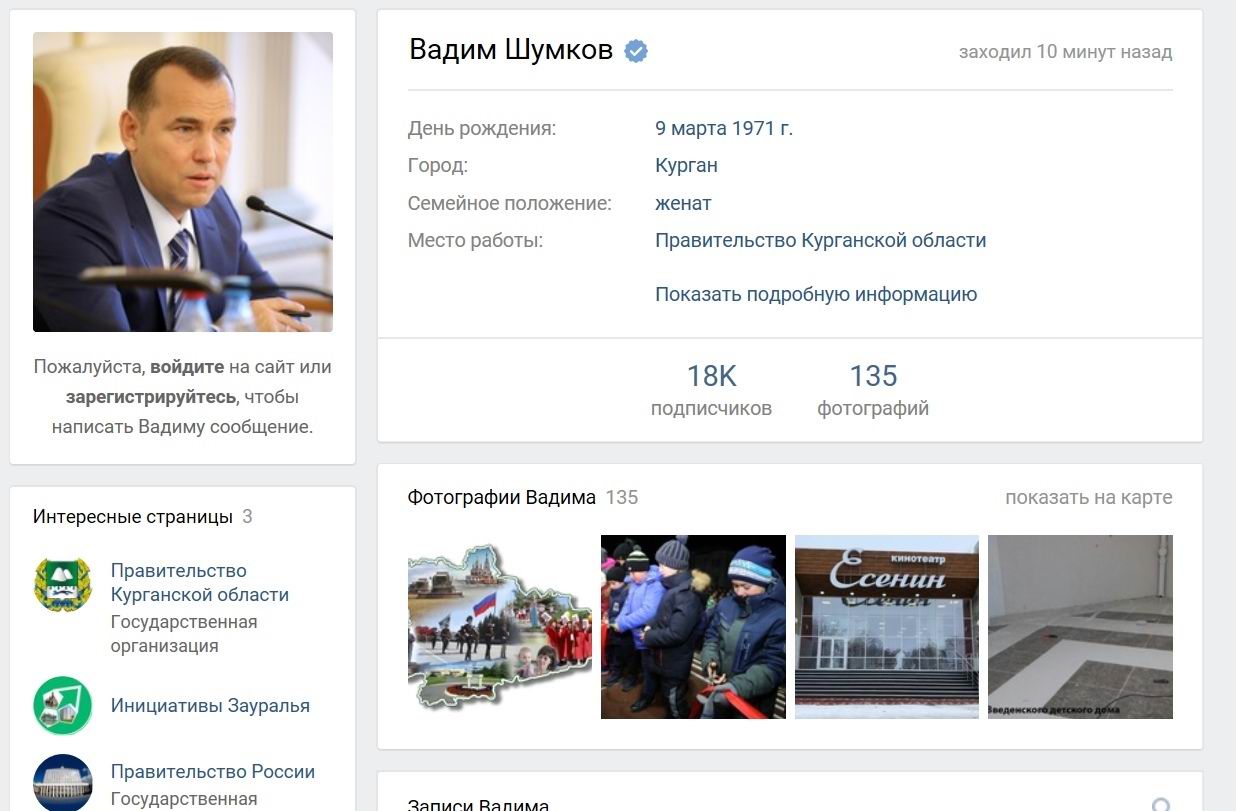 Актуальные страницы глав районов, городов и руководителей органов власти можно найти в списке друзей на аккаунте врио Губернатора Вадима Шумкова.